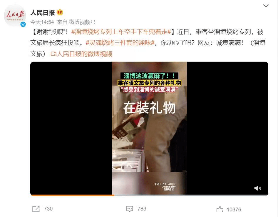 据游客爆料,他在烧烤专列上就遭遇了淄博文旅局长疯狂投喂,各种小礼物拿到手软。