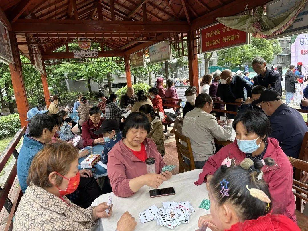 活动在满足广大人民日益增长的多样化体育需求上设置了多种项目,如套圈、羽毛球、篮球、跆拳道、飞盘等体育活动以及中医推拿等免费健康医疗,此外还在廊亭下举办了邻里掼蛋赛。活动现场热闹非凡,气氛欢乐和谐。