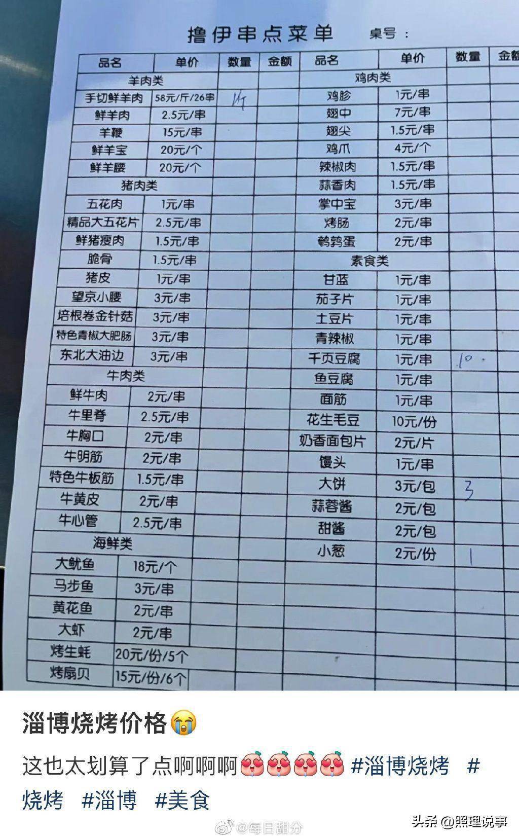 有网友晒出了淄博烧烤的点菜单,1元一串的鸡胗,1.5元一串翅尖,还有2元一串的掌中宝,都让网友直呼便宜。也怪不得大量年轻人“拖家带口”的疯狂涌入淄博“炫烧烤”,只因为淄博烧烤不仅服务意识好,价格更是无比的接地气,让人心动不已。