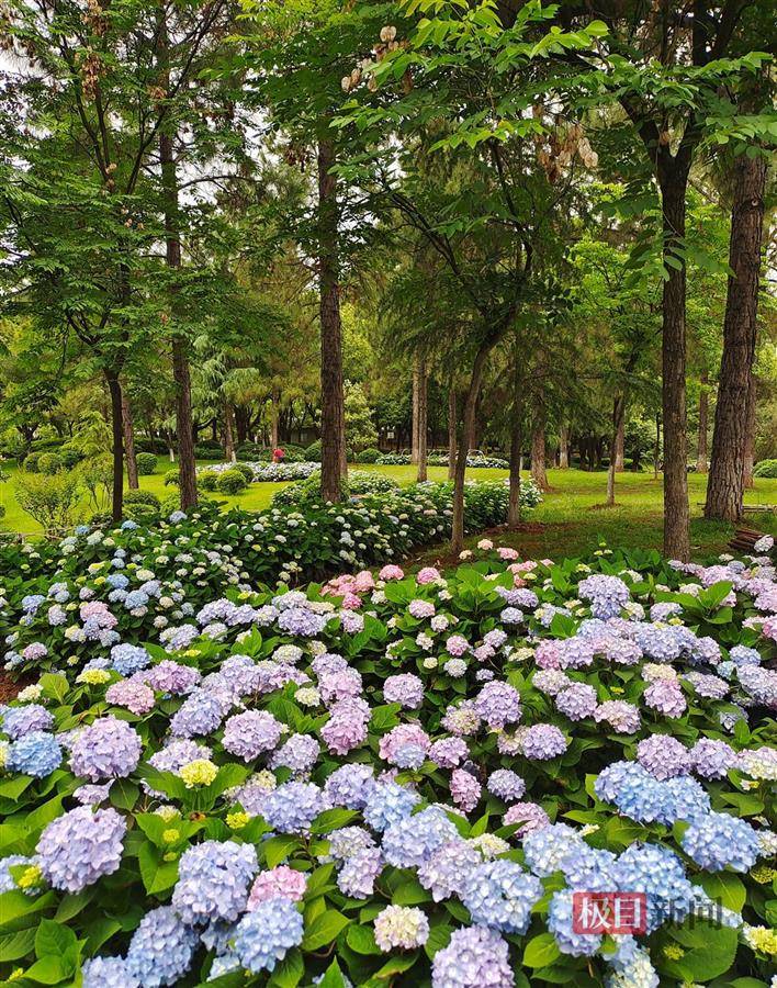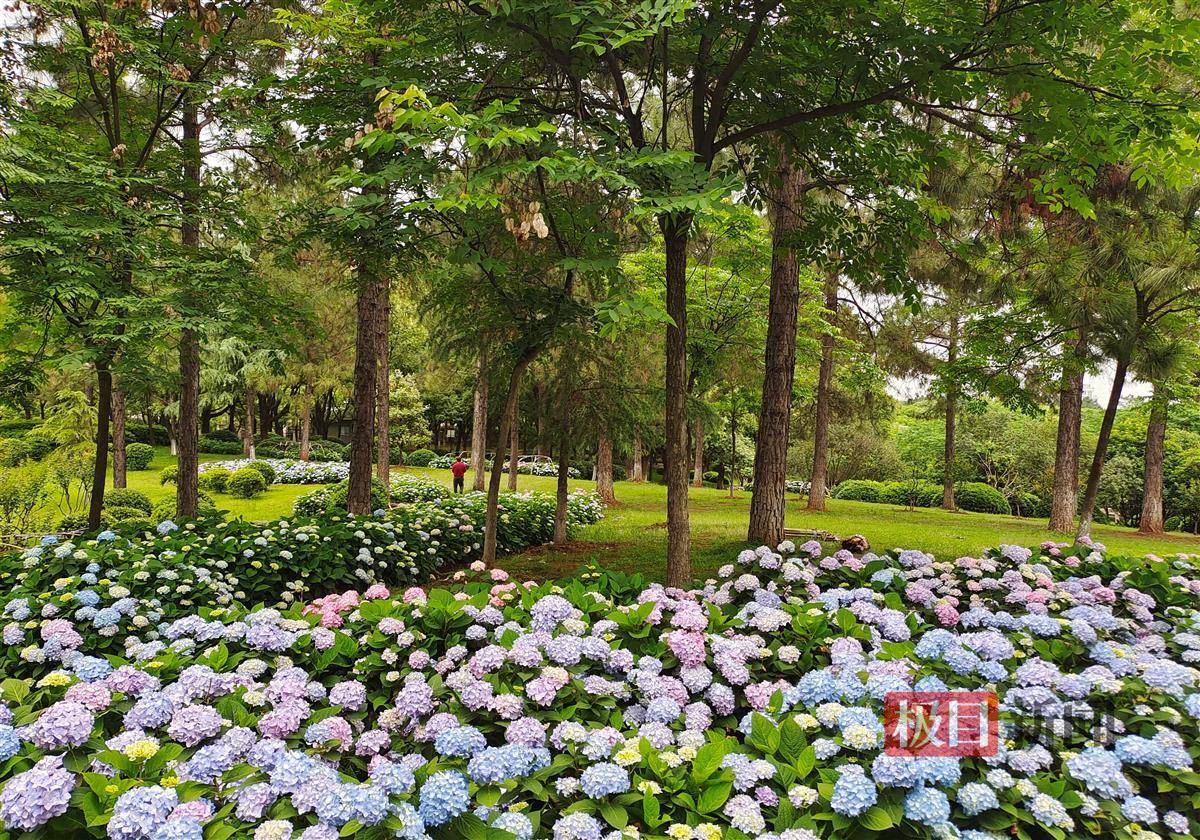 5月6日,立夏,位于武汉经开区的汤湖公园,万朵绣球八仙花竞相绽放,吸引不少游客前来观赏。