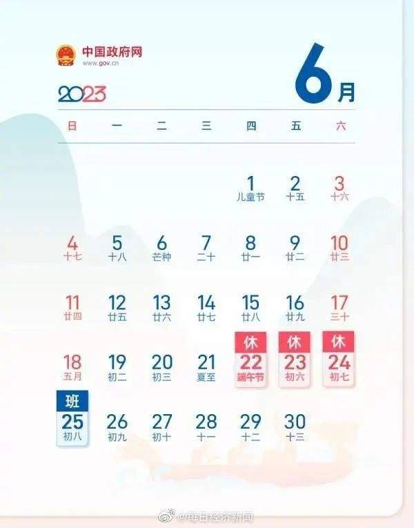 五一调休才刚刚熬完,有网友发现,今年端午节是6月22日-24日放假,25日(周日)上班。需要连上6天班。