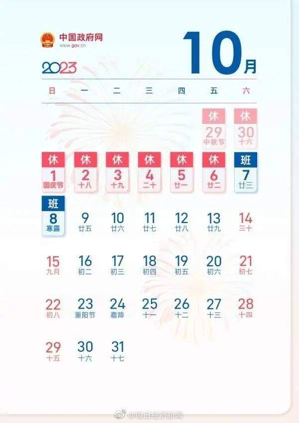 而今年中秋国庆假期“合体”,形成8天的超级黄金周,但节后需要连上7天班。9月29日至10月6日放假调休,共8天。10月7日、10月8日上班。