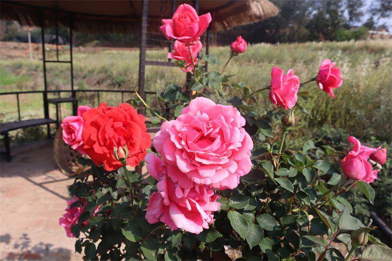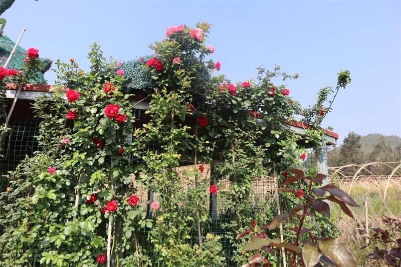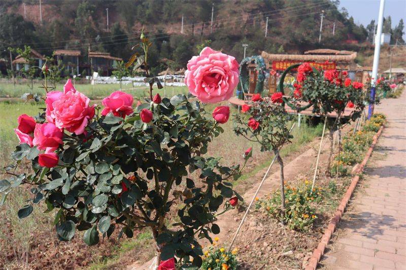 最美人间四月天!时下,楚雄州南华县雨露乡阿呀噜田园农庄的月季花竞相绽放,花朵娇艳欲滴、耀眼夺目。