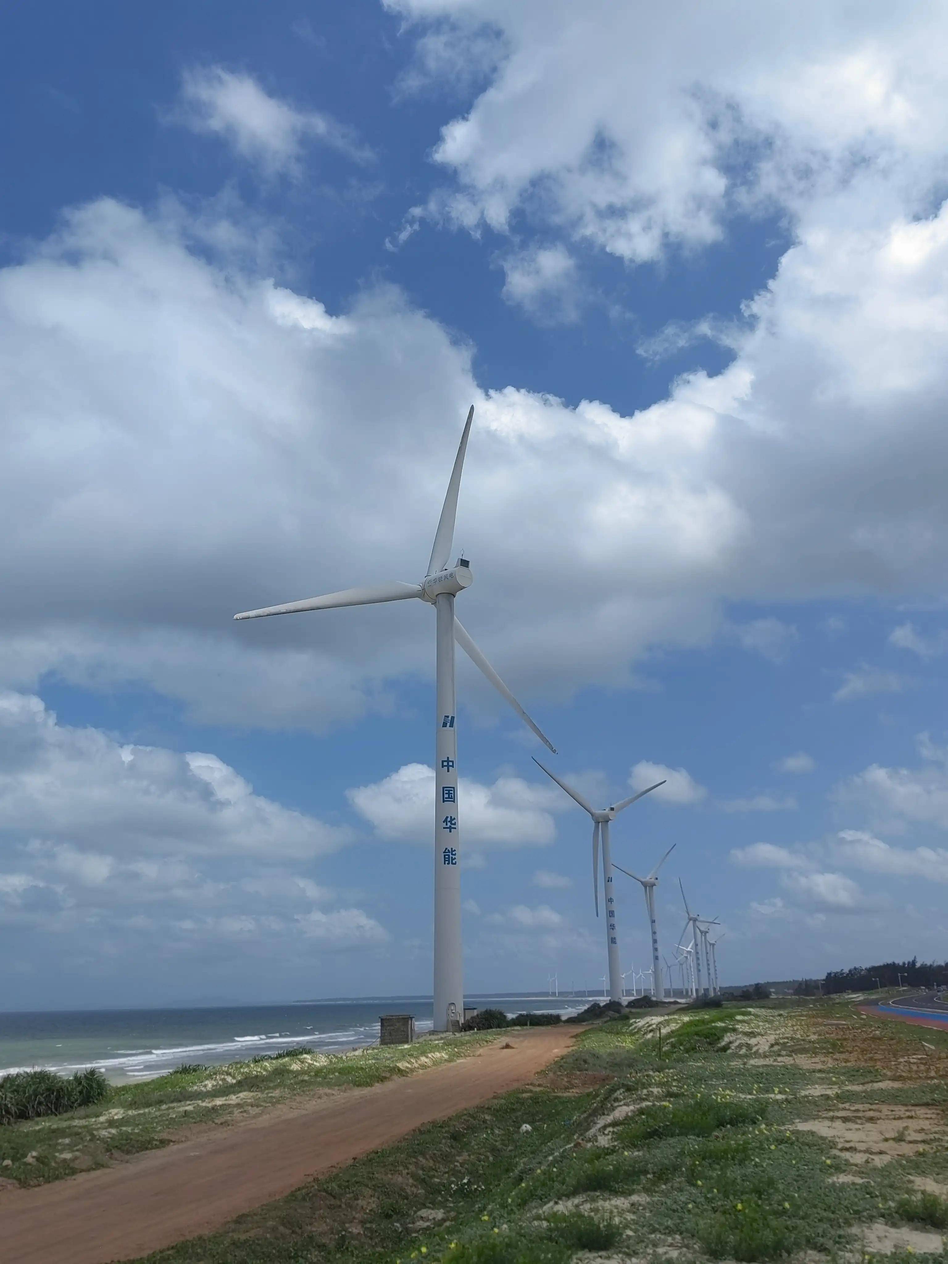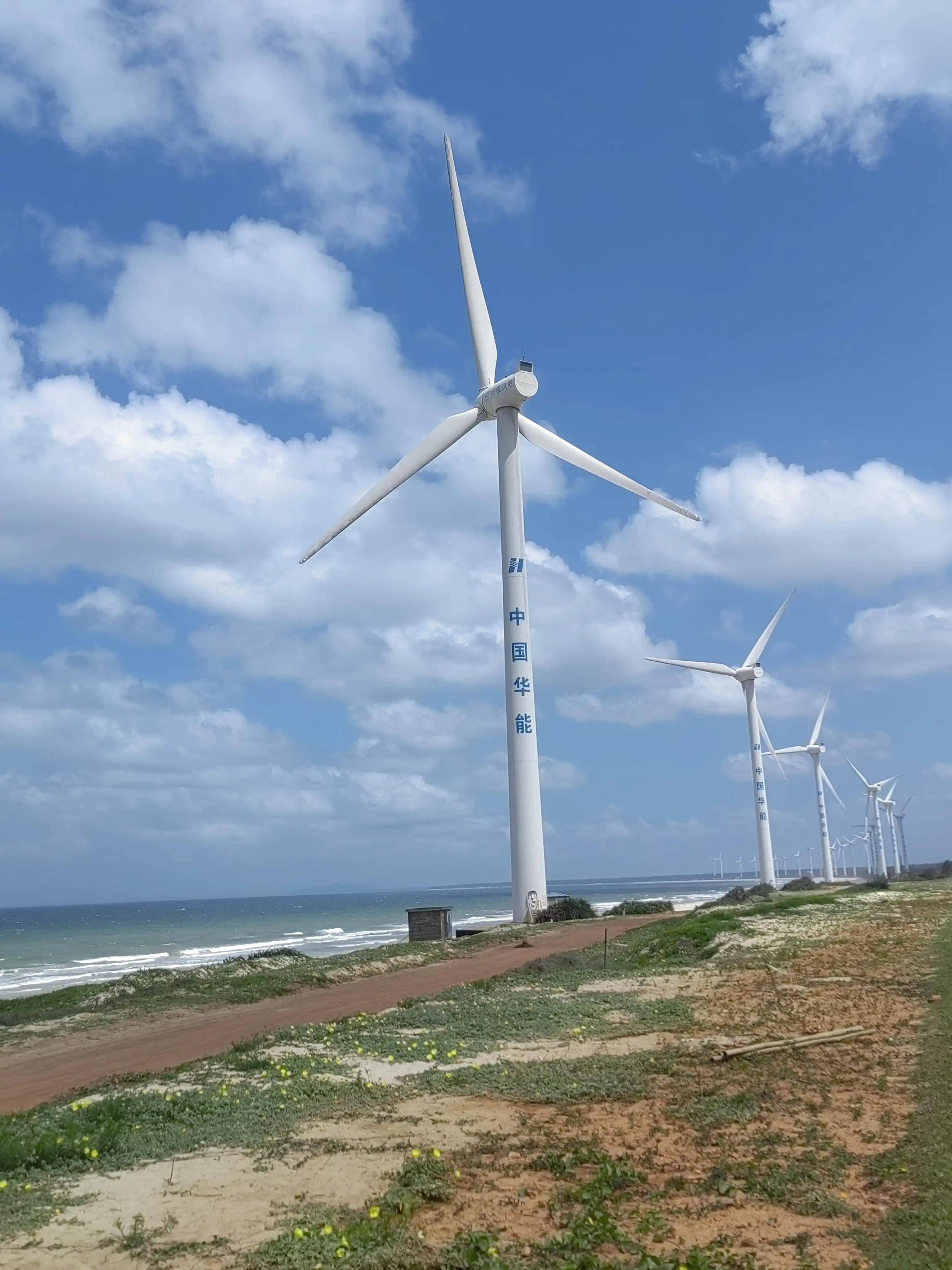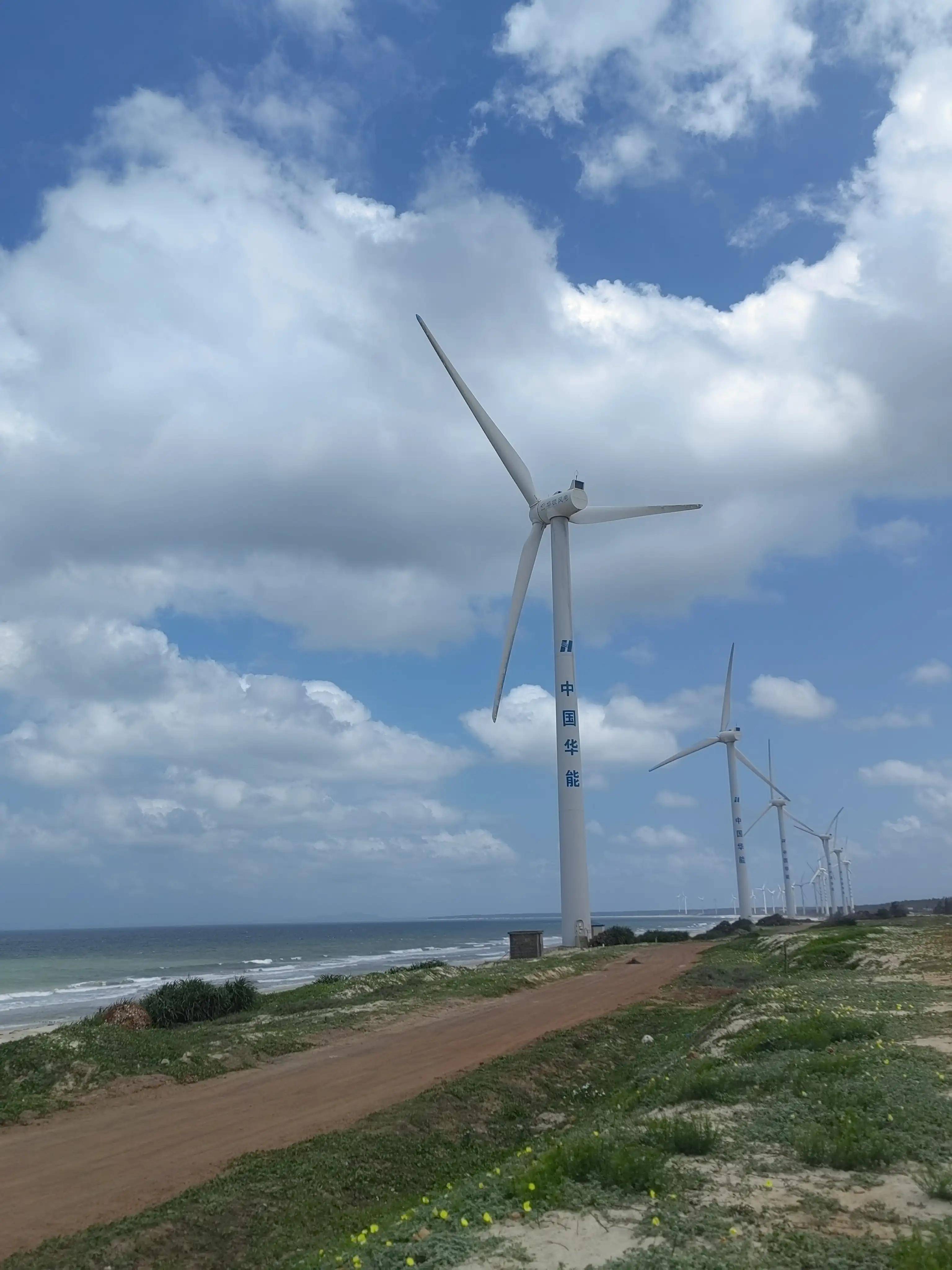 离木兰湾不远的风车海岸,成排的发电风车与蓝天白云相互交映,壮观着整个海岸线。
