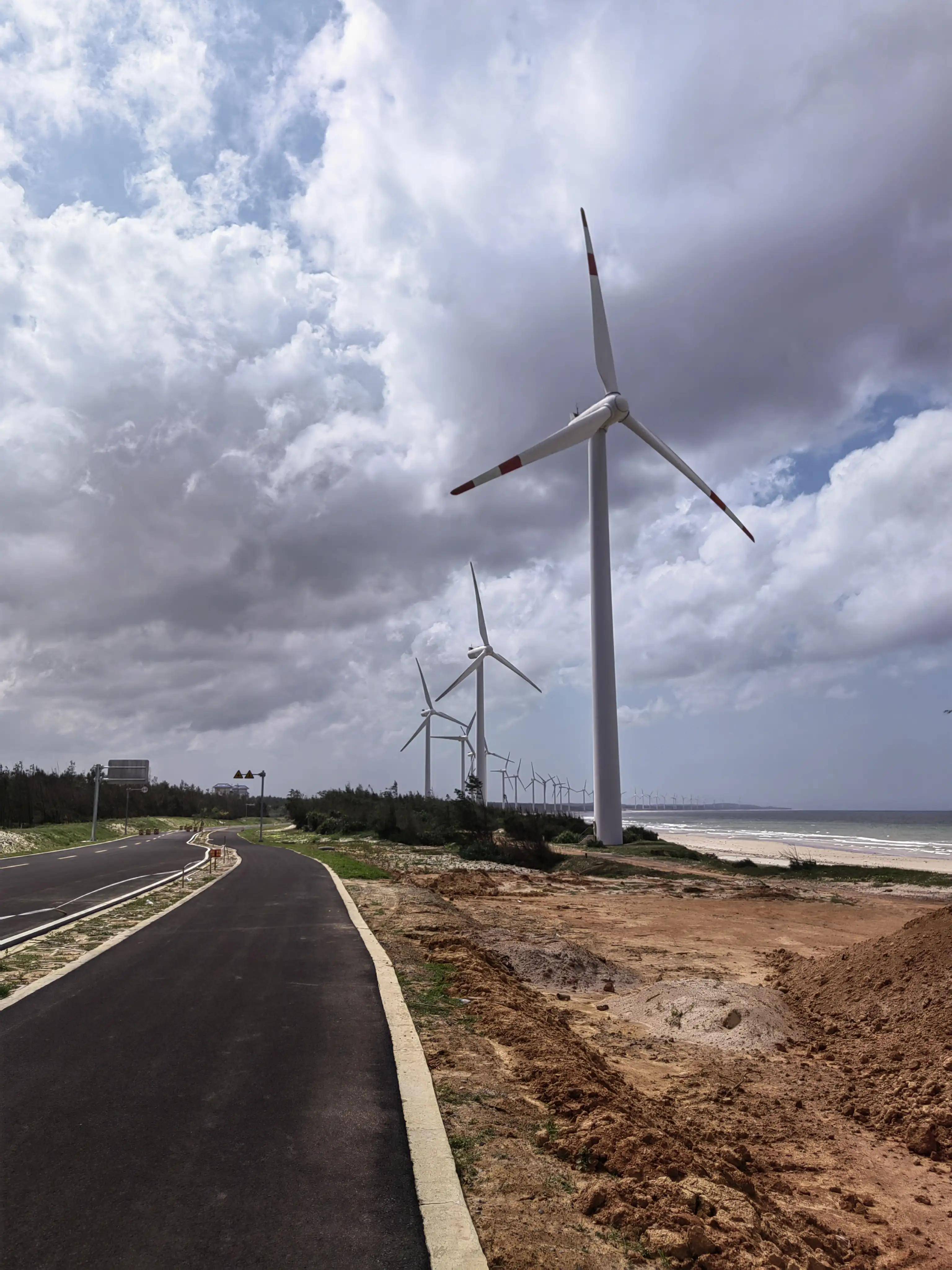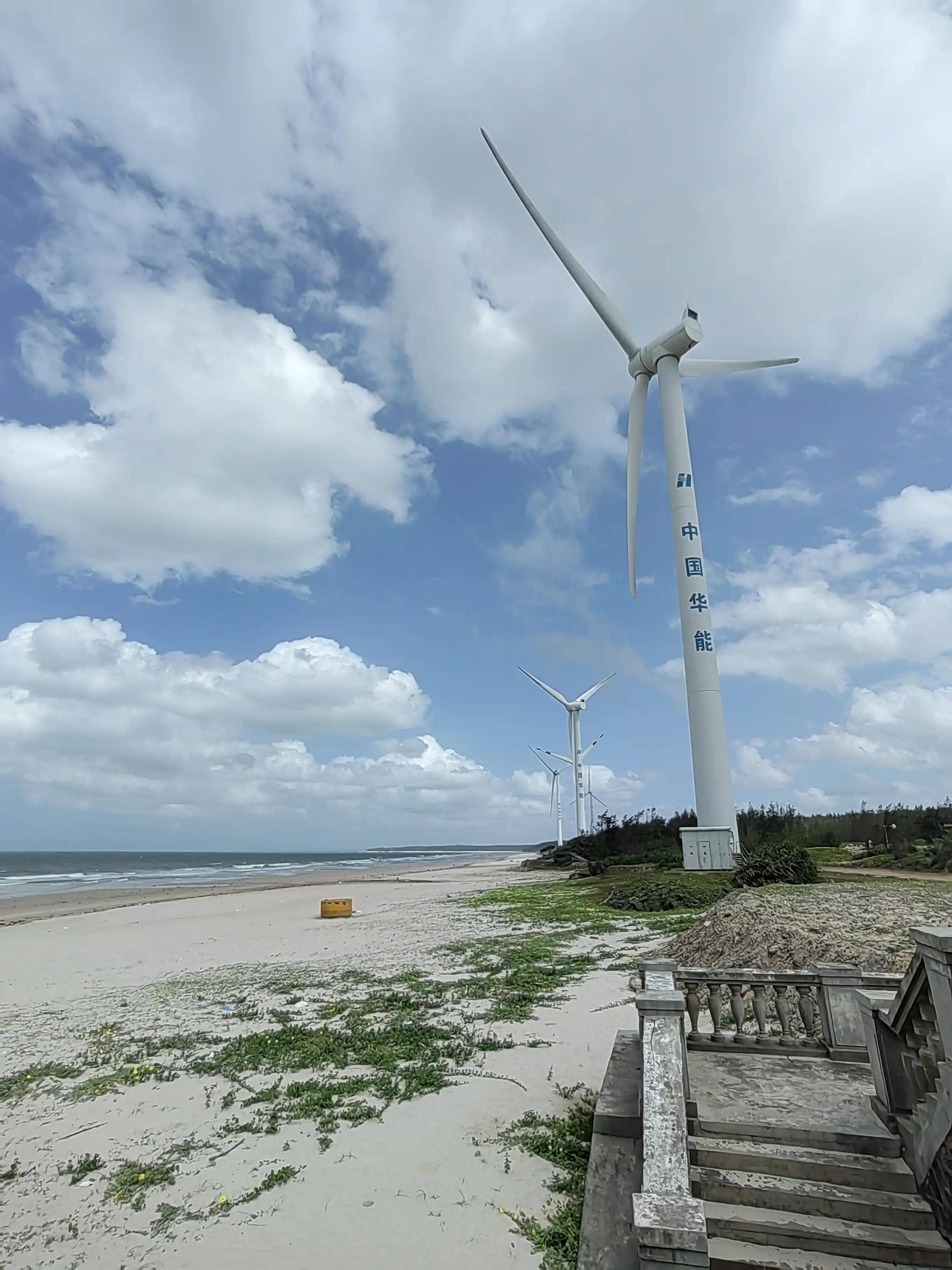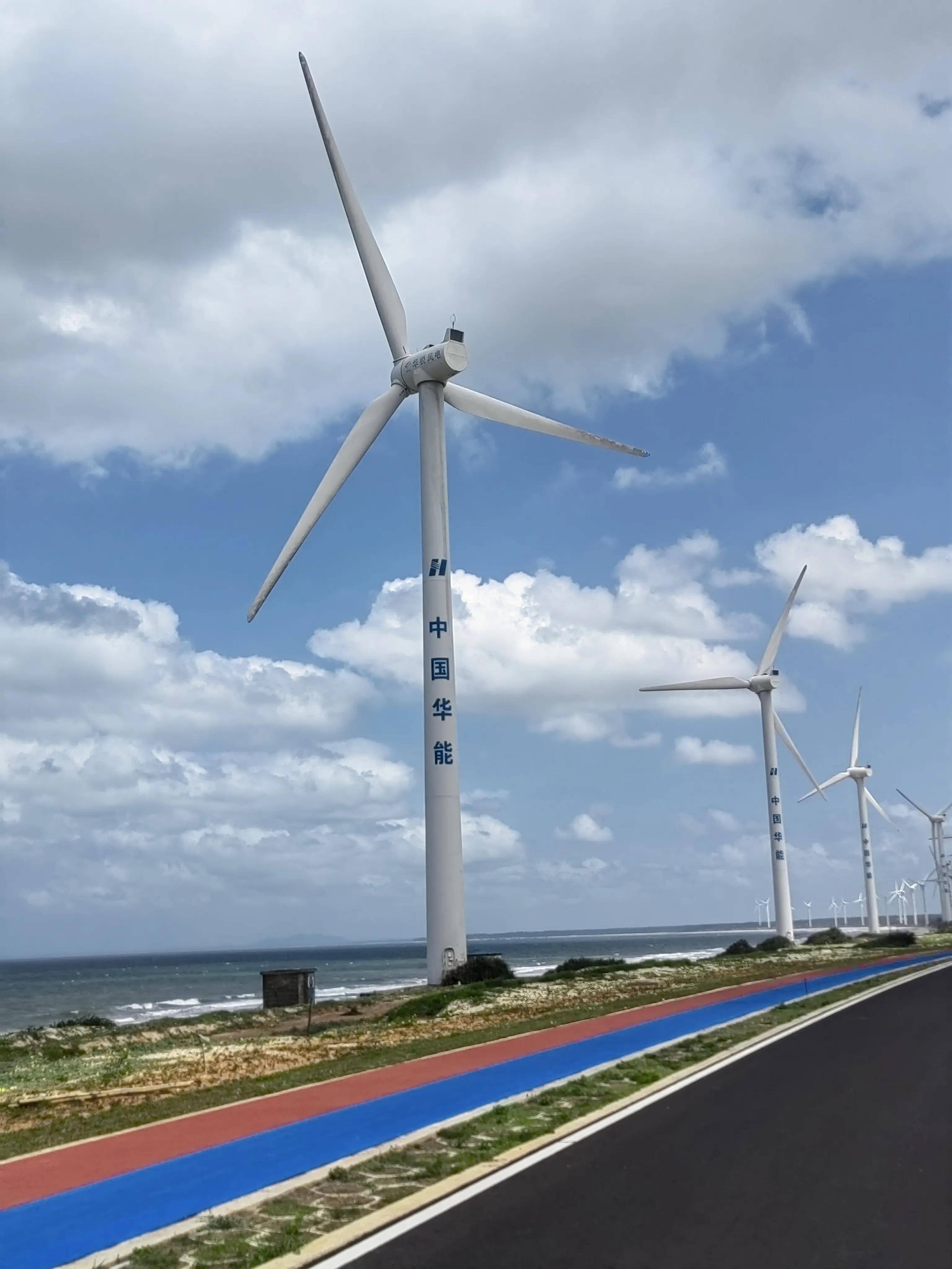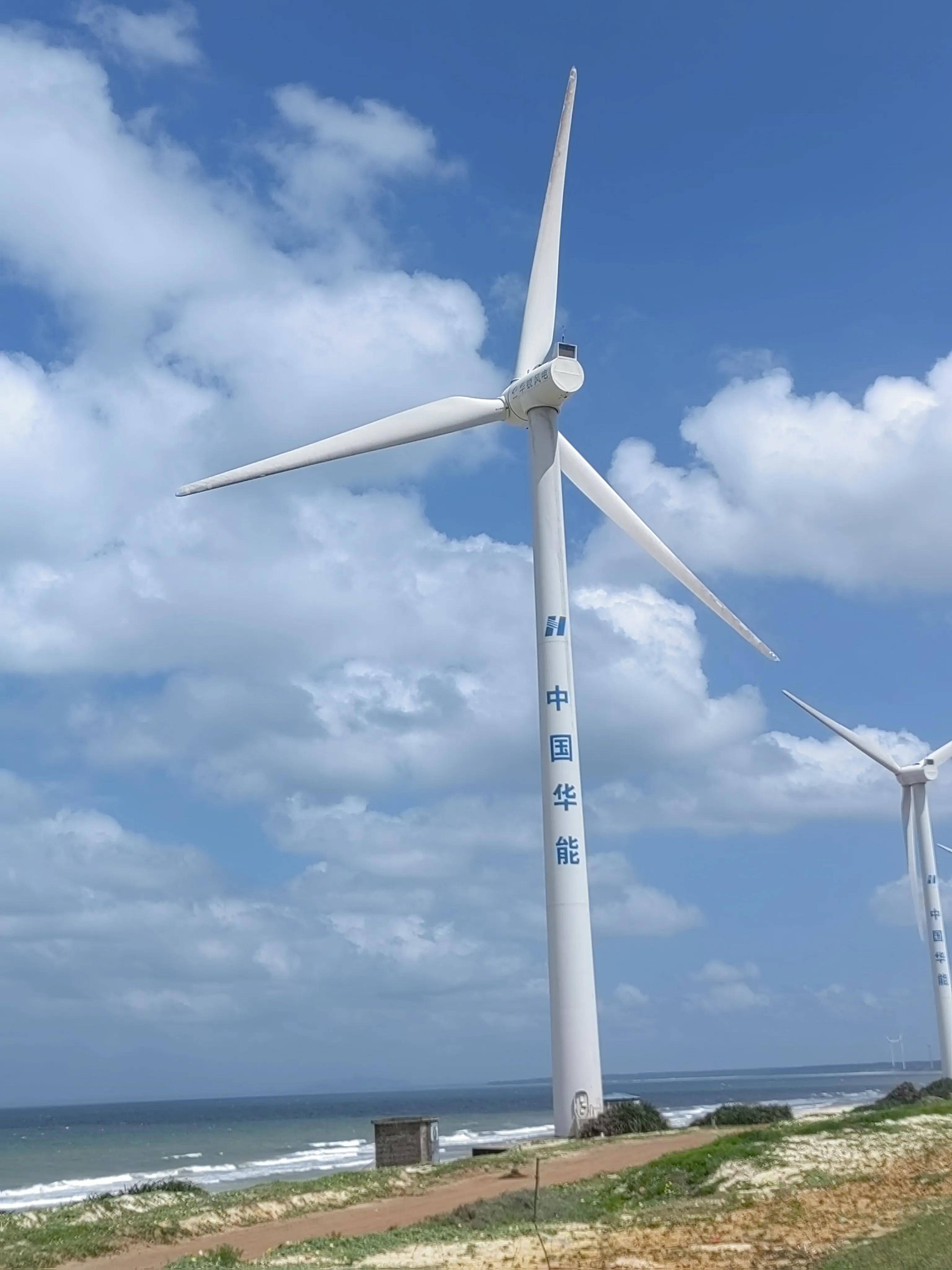 离木兰湾不远的风车海岸,成排的发电风车与蓝天白云相互交映,壮观着整个海岸线。