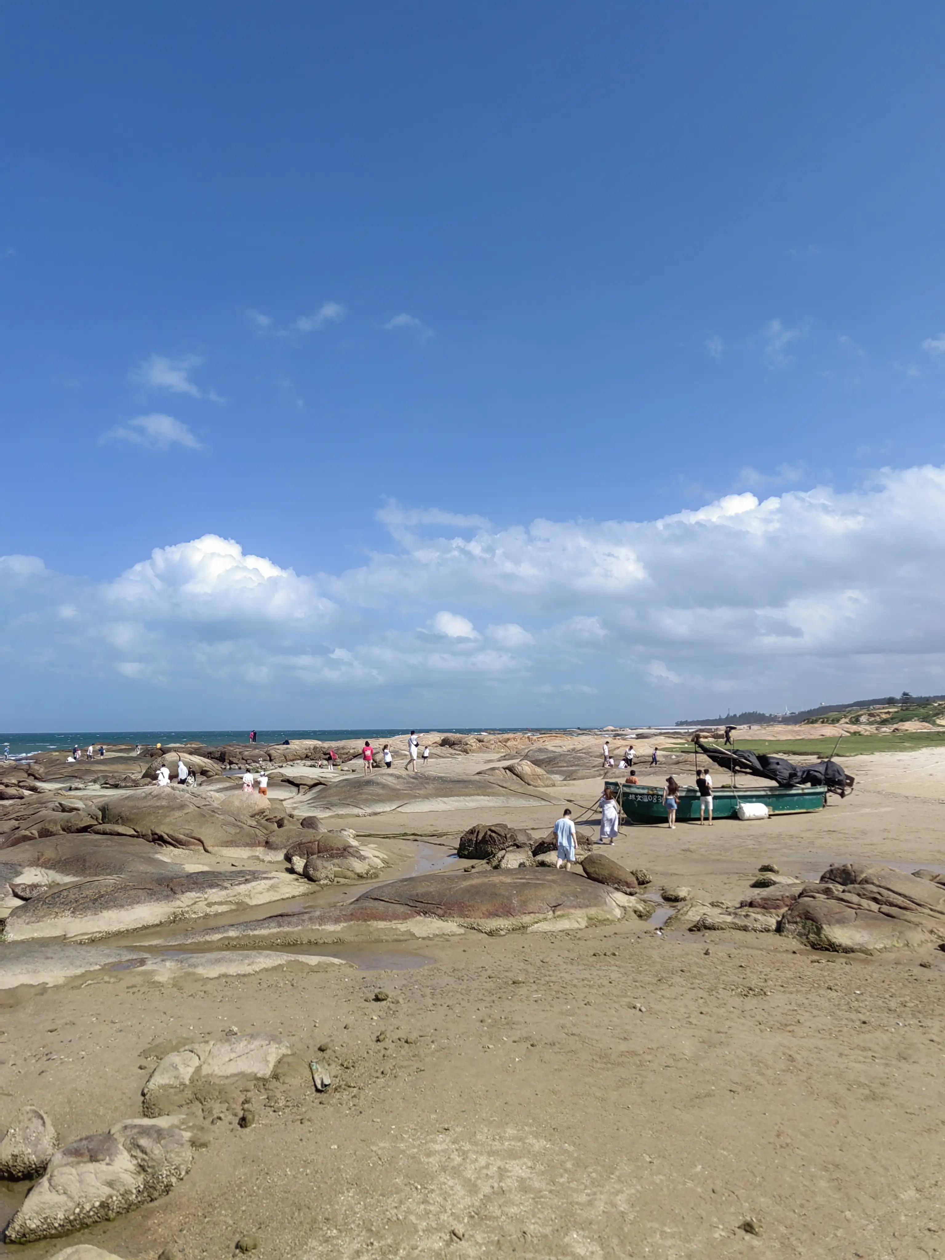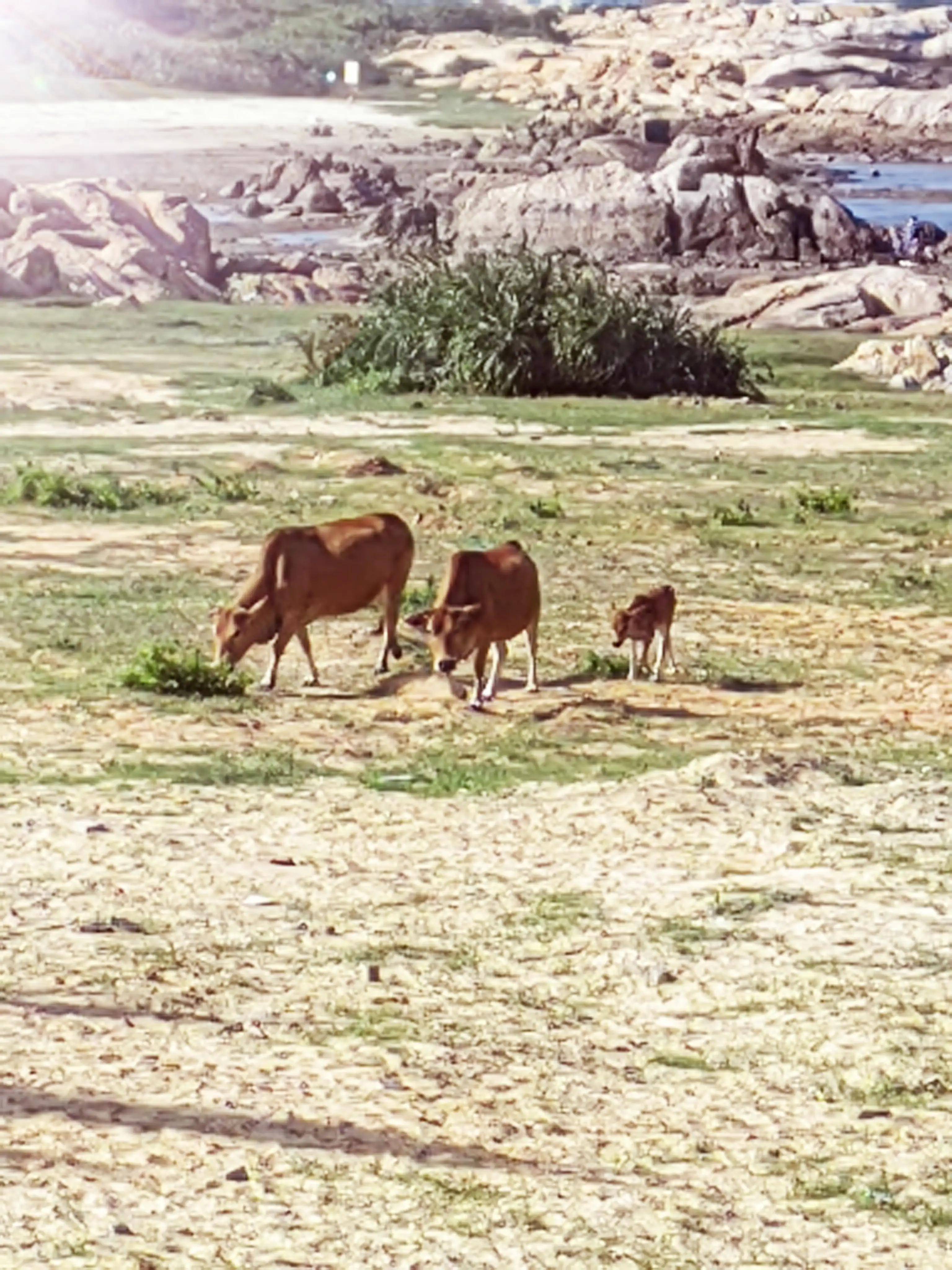 绵延的沙滩,松软细腻,还有散养的黄牛,一派自然风光。