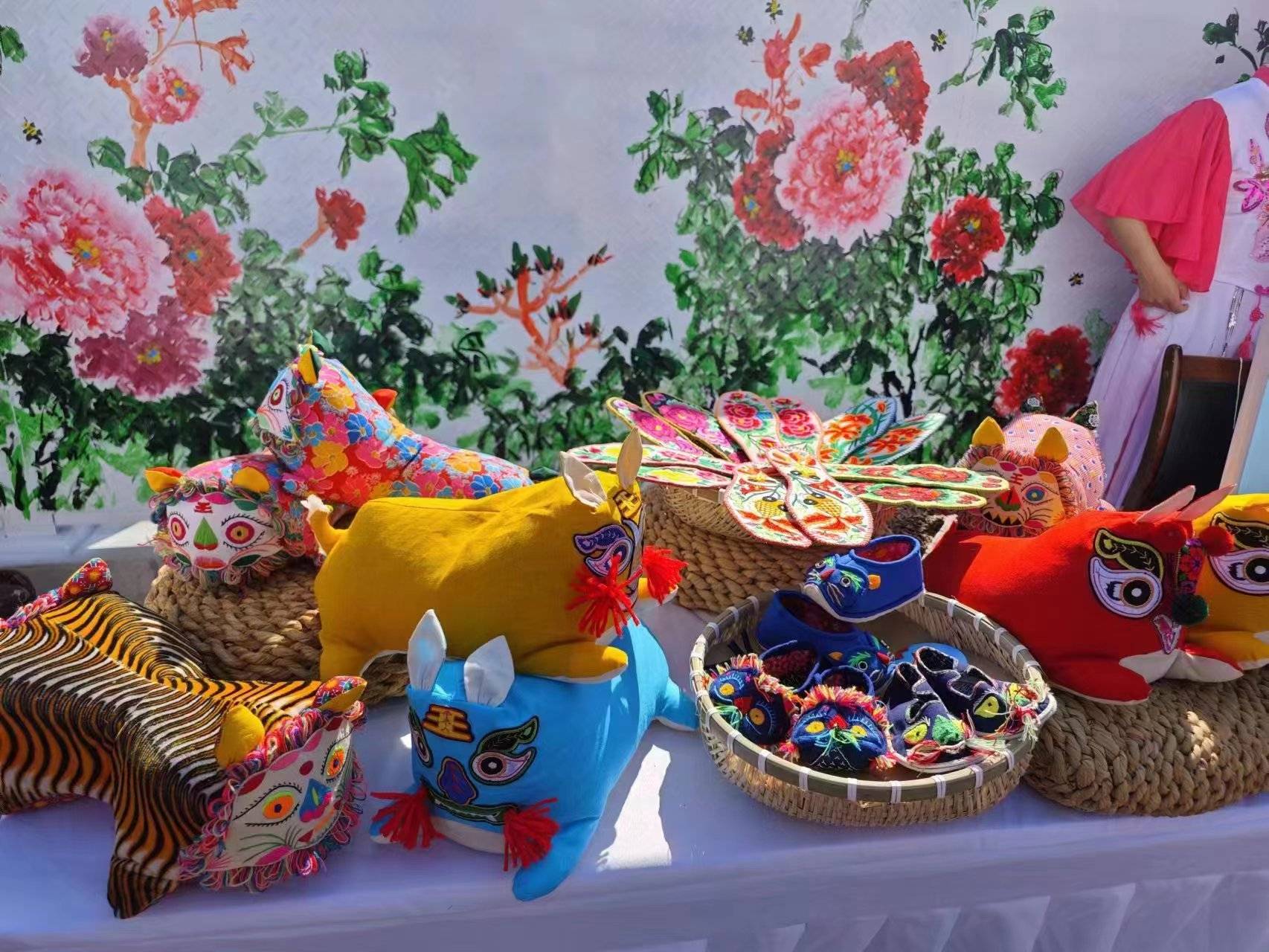 现场展出的大庄科乡特色手工艺品。受访者供图