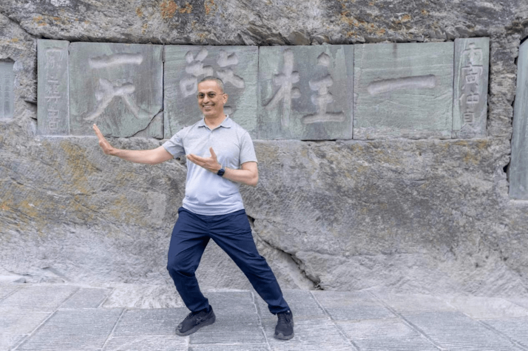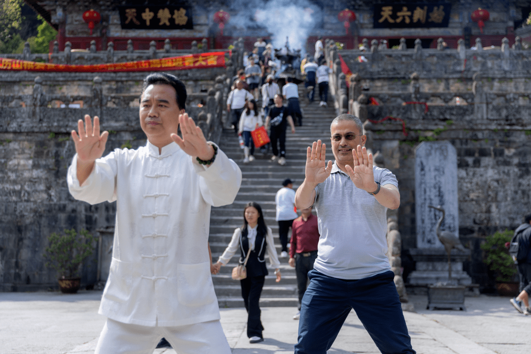 哈列德先生多次到访中国,对武当山有着特别的向往,也是太极文化的追随者。三年疫情结束后,果断将十堰作为再到中国的首站,早年便拜中华炎黄文化研究会太极文化专委会会长、和太极创始人何俊龙先生为师的哈列德主席,是一位不折不扣的太极迷。到达武当山简单休整后,便走进武当和太极学院开启了为期两天的太极文化与太极拳的学习,虽时间短暂,但每招每式都神形兼容,能感受到他的用心习练和对太极文化的深入理解。