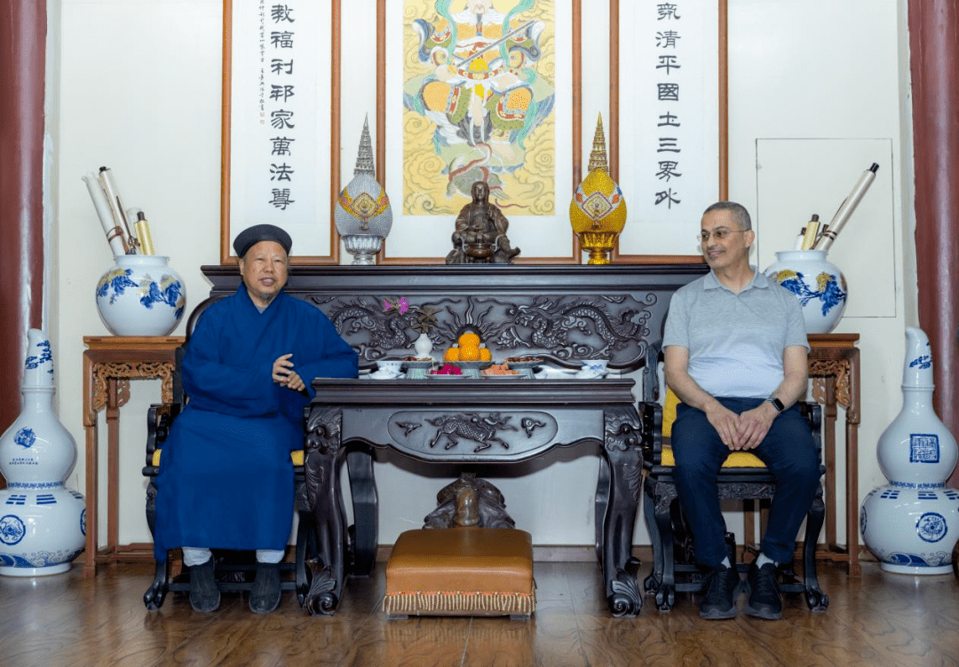 十堰市政协副主席、武当山道教协会会长刘文国与哈列德主席就道教文化的起源、发展和精髓进行了深入的交流。