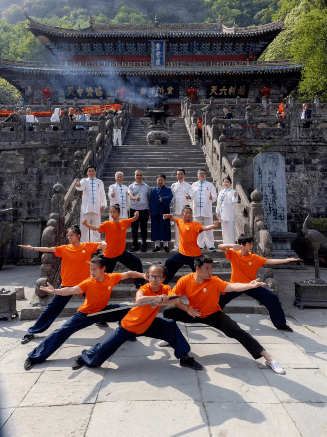 在武当山特区工委委员、党政办主任李成生的全程陪同下,哈列德亲王先后到访了紫霄宫和金顶,并在紫霄宫大殿前与游人同乐,尽情展示自己的太极拳功夫,一招一式之间,尽显太极神韵。
