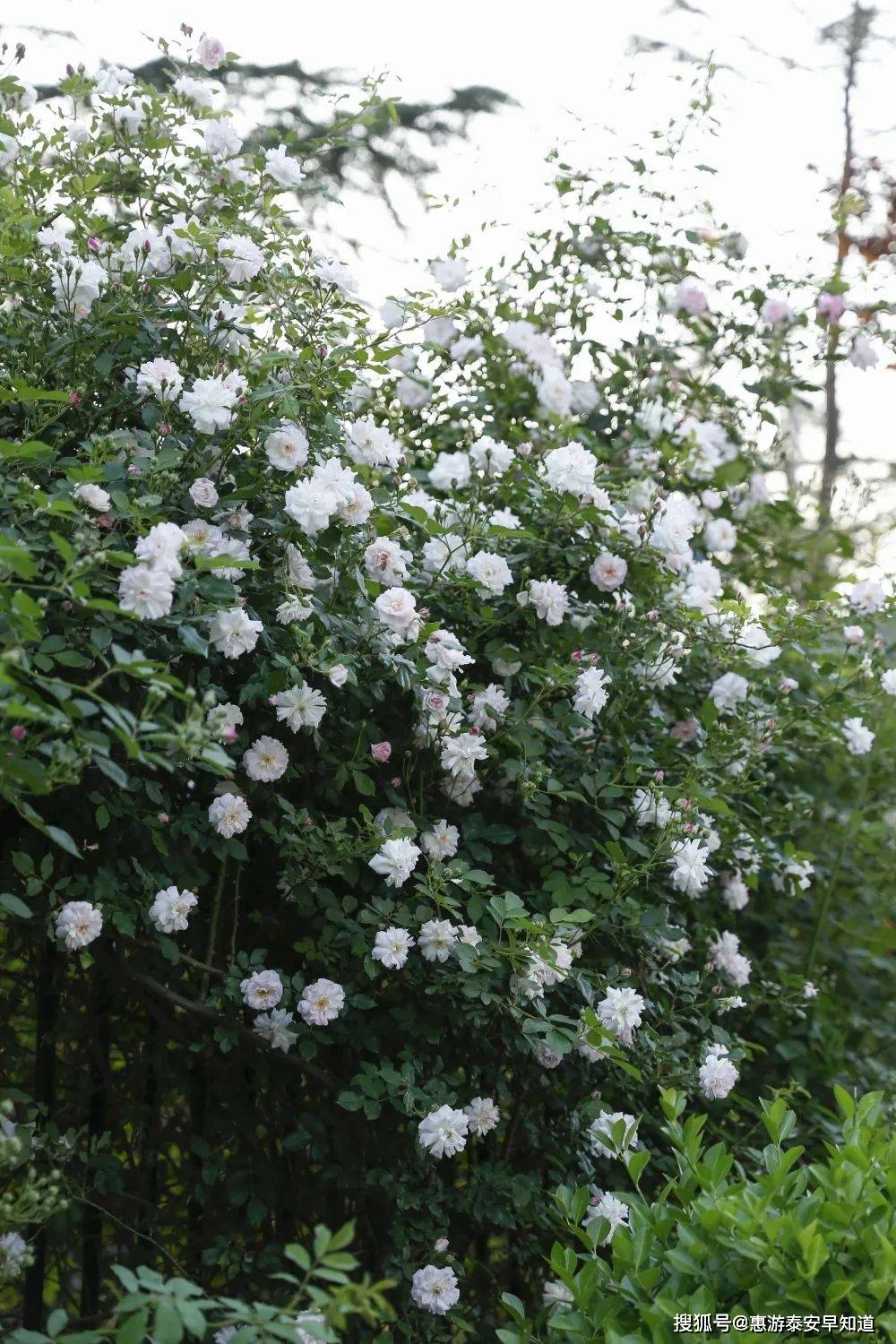 除了常见的粉色系蔷薇,光彩南路还有一整面白色系野蔷薇。少女般的明艳抓住了行人的目光,谁不想在这多停留一会?