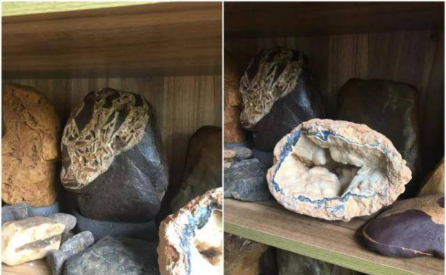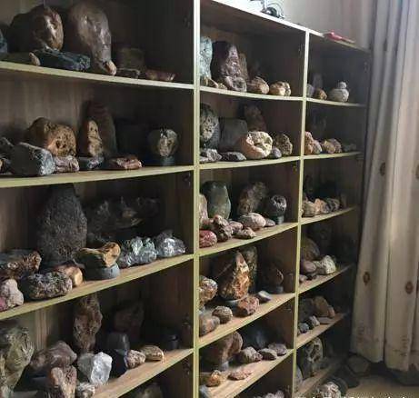 溪坑石、火山石、云石、木化石……冯大叔有3个大书柜,码得满满当当,每个都擦得油光锃亮,纹理清晰。