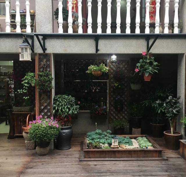 每一面墙壁都没有空闲,被打上了十字格的木架子,与挂篮中的鲜花亲昵。