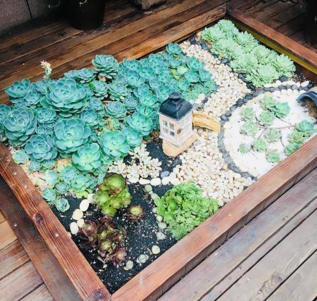 院中间的一池多肉里,摆着北欧童话风格的小房子和小人玩具;