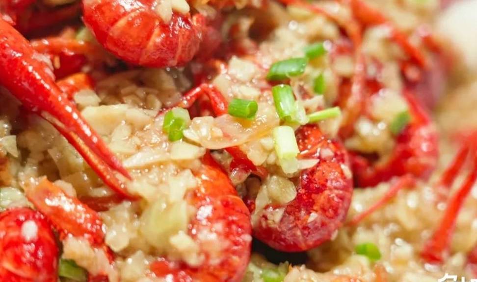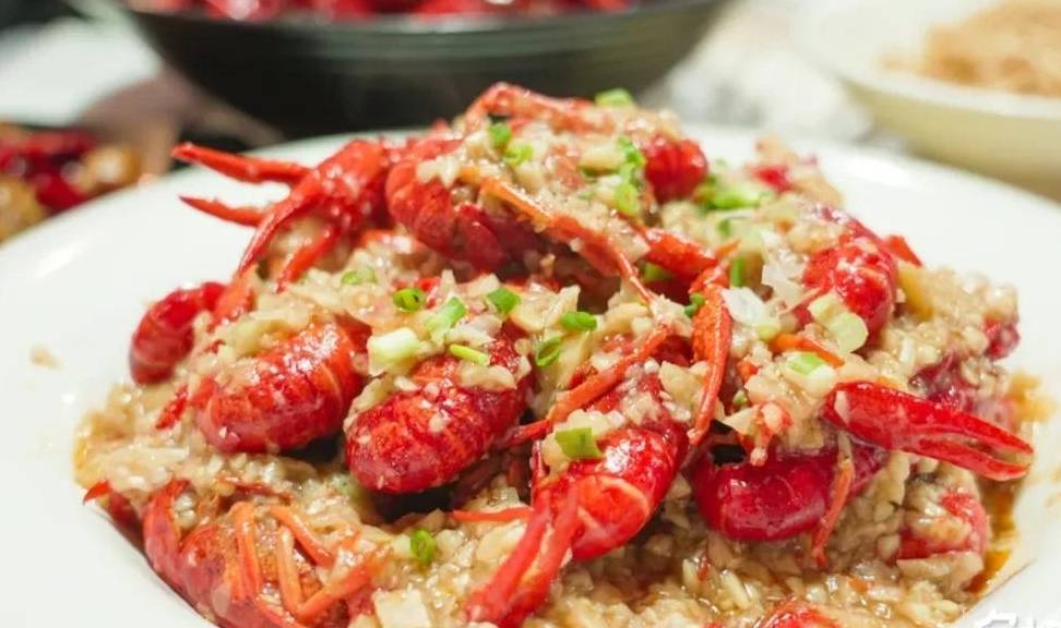 小龙虾鲜红的外壳被白色软绵的蒜蓉包裹,上桌蒜香四溢,先嗦壳再取肉,虾肉的香甜与蒜香完美结合,萦绕舌尖。