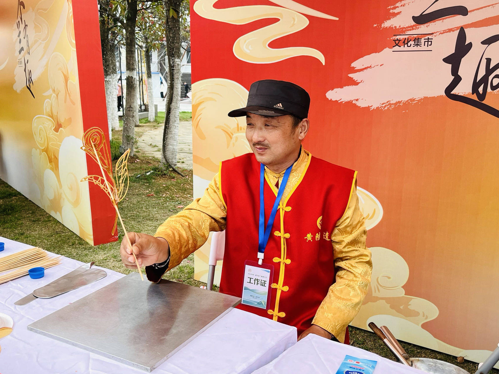 非遗项目糖画代表性传承人现场制作、展示糖画(央广网记者 朱娜 摄)