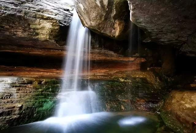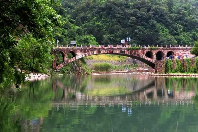 峡谷深处的山美,水美,奇峰峻岭,怪石嶙峋,水清净明,鱼翔浅底,静影沉璧影布石上的现象却随处可见!谷内奇峰突兀,峭拔雄壮,一条蜿蜒曲折的桃花溪水贯穿峡谷,溪水两岸草藤垂挂,杂木丛林莽莽无际,随山风涌动的绿潮似海水漫卷。