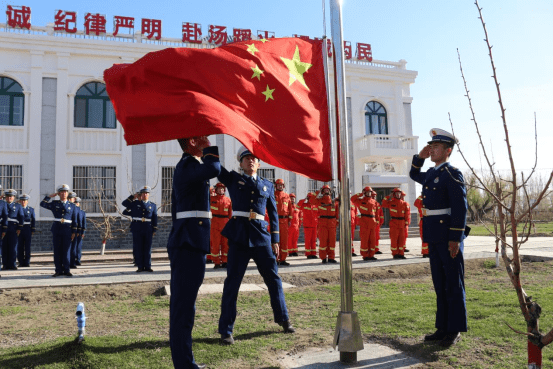 “起来,不愿做奴隶的人们·····”当鲜艳的五星红旗冉冉升起,当一抹灿烂明媚的阳光洒在脚下,身随舞动,万籁盎然,心中总会油然而生一份澎湃之情。一程风沙,半卷草木,彼时的塔城南湖正是点点星辰,潇潇北风,斗志昂扬的我们,正在把青春最美的故事,写在点点滴滴的时光里。每天奔跑在蜿蜒曲折的公路上,任汗水在脸上肆意流淌,我们喜欢在这样的时光里,翻阅记忆的照片,一帧帧、一张张、记录火焰蓝下的奉献、付出、责任和担当,继而再看懂制服的笔直和青春的模样。