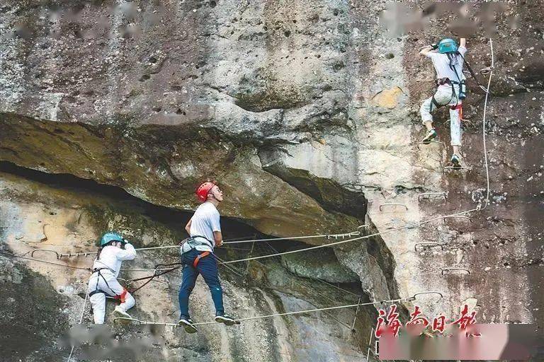 “抓好扶手、踩好脚蹬,不着急,一步步来。”5月6日,琼海白石岭景区游人如织,在飞拉达项目入口处,工作人员一边为游客绑好安全绳索,一边提醒道。现场,不少游客扶着岩壁拾级而上,慢慢攀向山顶。尽管“五一”假期结束,但景区热度不减。