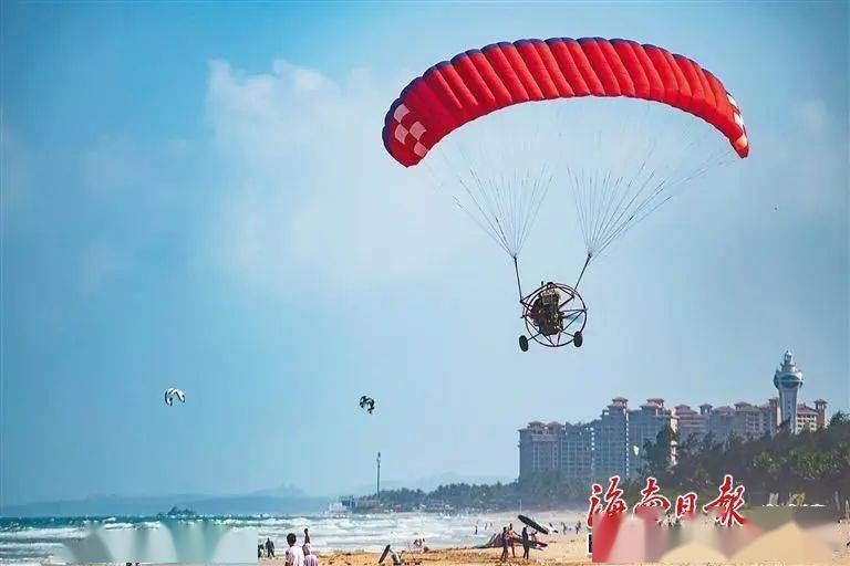 游客在琼海博鳌海滨体验滑翔伞项目。本组图片均由特约记者 蒙钟德 摄