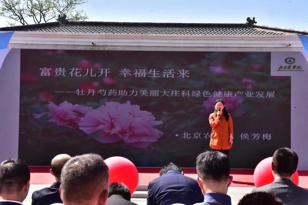 来自北京农学院园林学院的副教授侯芳梅现场为大家介绍了董家沟村种植牡丹的悠久历史:“据专家团队鉴定,董家沟村的百年牡丹始于明代末期,在村民精心守护下已历经300多年。董家沟村几乎家家户户都有养花传统,这里气候和土壤都非常适合牡丹的生长繁育。我们团队也一直在加强与董家沟村的合作,通过‘百师进百村’等实践活动指导当地农民提高种植水平,希望能够真正帮助到董家沟村的牡丹种植产业,带动当地旅游,推动当地乡村产业发展。”