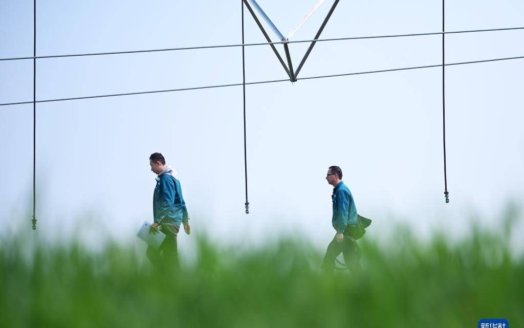 2月28日,在西平县老王坡高标准农田示范区,刘亚辉(右)和王英凡在对平移式水肥一体化喷灌机进行巡检。