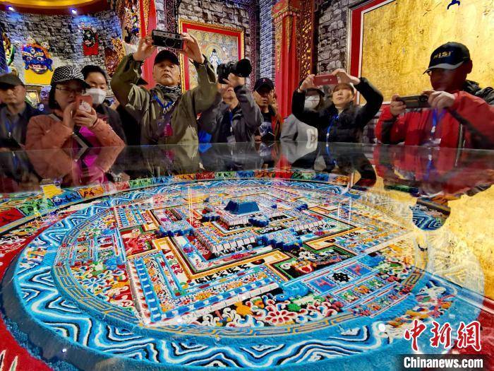 图为参观者拍摄坛城。 张添福 摄