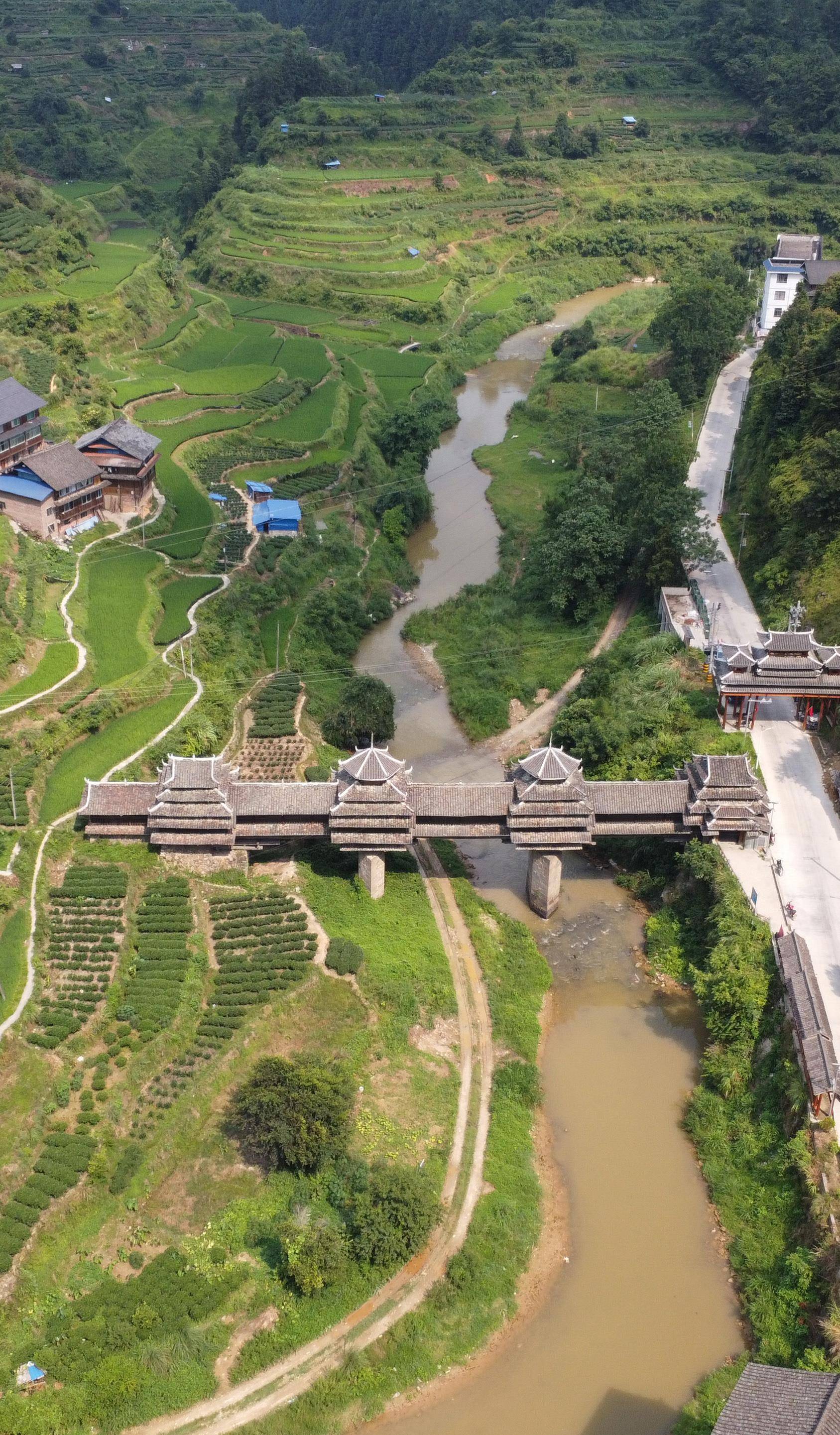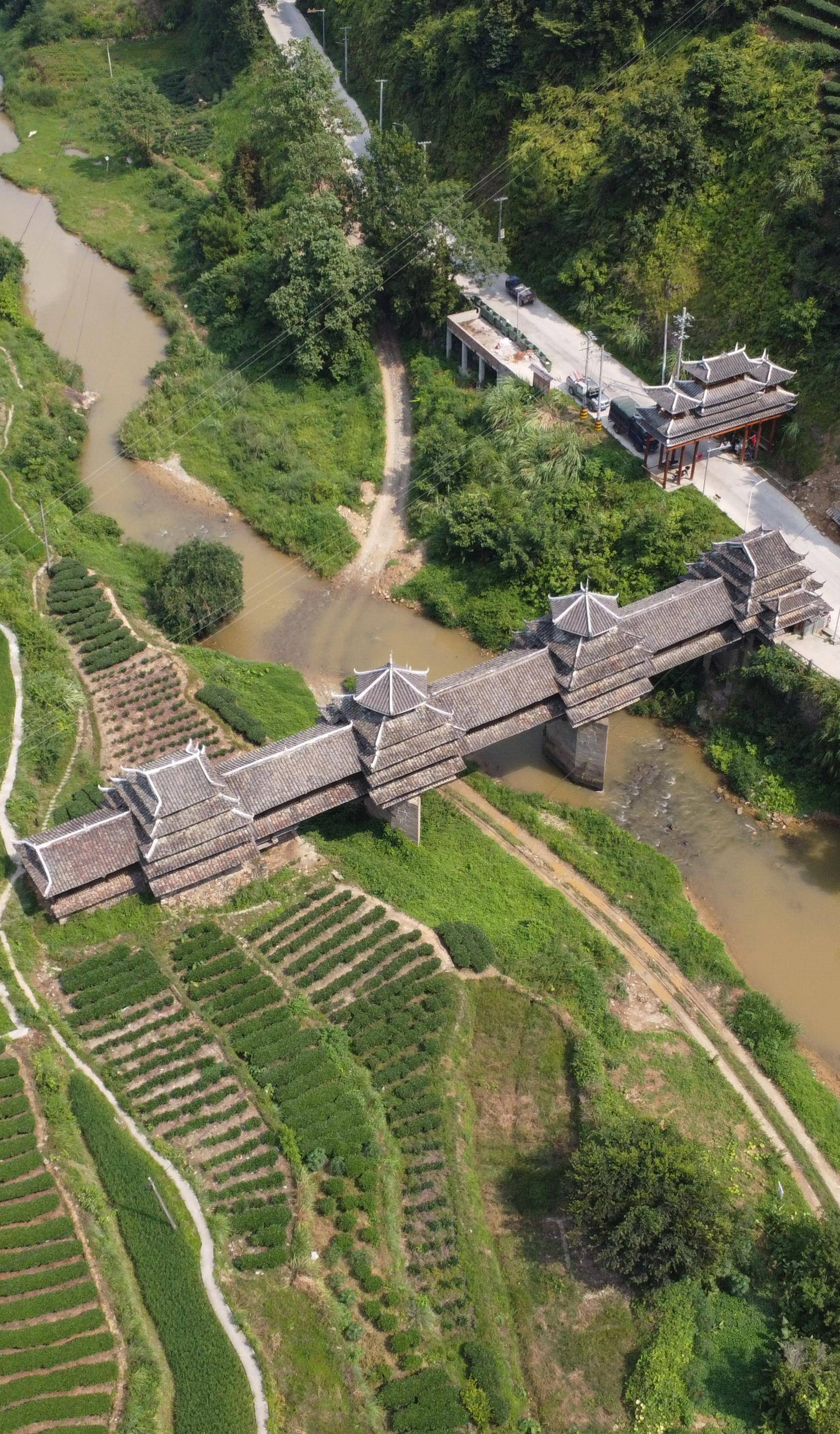 巩福桥位于三江县独峒乡八协村南的孟江河上。初建于清光绪三年(1877年),当地村民经营13年,精心设计建造,于1890年建成。桥身长63.1m,桥廊宽4.0m,河中砌有2个石墩,两桥墩上均筑有五重檐塔楼,2~ 4层为方形重檐,屋顶为六角攒尖顶。两端为三重檐歇山屋顶阁楼。西入口北侧有一木牌楼。