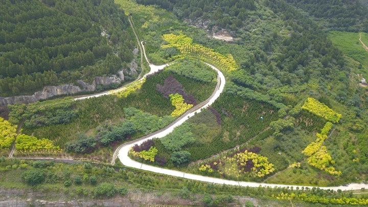 龙洞至大华紫郡段山体绿道完成毛石碎拼步道1.15万平方米,蹬道2873平方米,整理绿化用地8695平方米,共计栽植元宝枫、黄栌、迎春、连翘等各类苗木1.3万株、小叶扶芳藤8795平方米等。