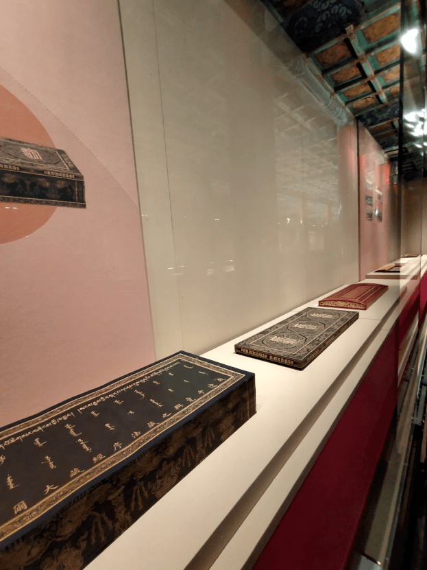 清朝整理翻译了多语种大藏经和单本佛经并刊印颁赐全国,编撰和刊刻了多部多民族语言类字典等工具书作为辅助读物。该单元挑选明清宫廷刊刻出版的重要经书和多民族语言文字类的工具书展出。例如故宫博物院藏的《清文翻译全藏经》、泥金写本藏文《甘珠尔》、《西番译语》等。