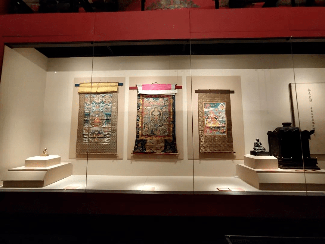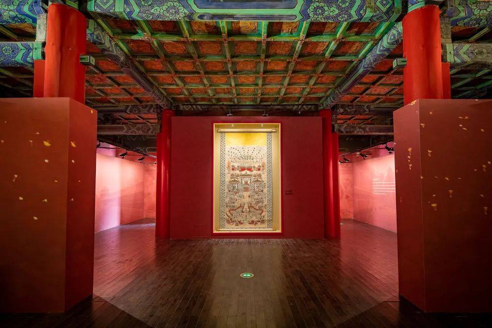 该单元体现民族交流,重点体现为政治上的认同与归宿。“修其教,不易其俗;齐其政,不易其宜”,元明清历朝统治者既尊重西藏人民的宗教习俗,又注重政令统一,因地制宜,因势利导,在西藏地区制定相应政策,西藏与中央建立了紧密关系。展厅设计上,该单元参考了故宫雨花阁的建筑布局。