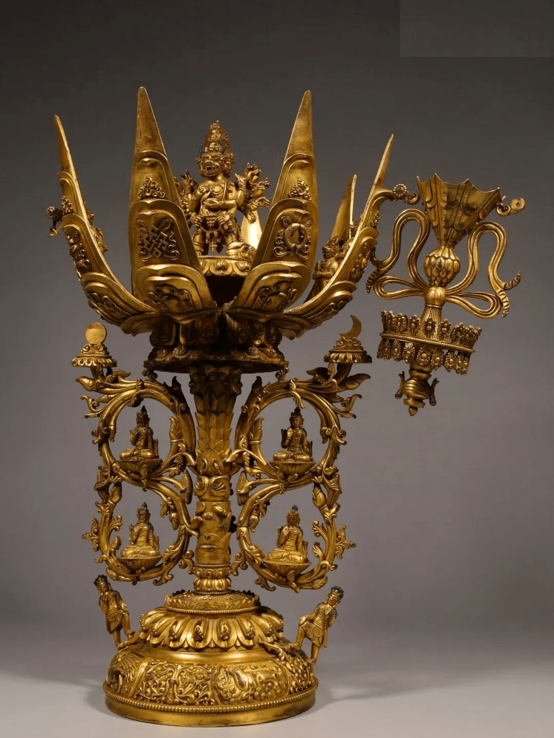 △ 铜鎏金八瓣莲花大威德金刚曼陀罗(“大明永乐年施”,布达拉宫藏)