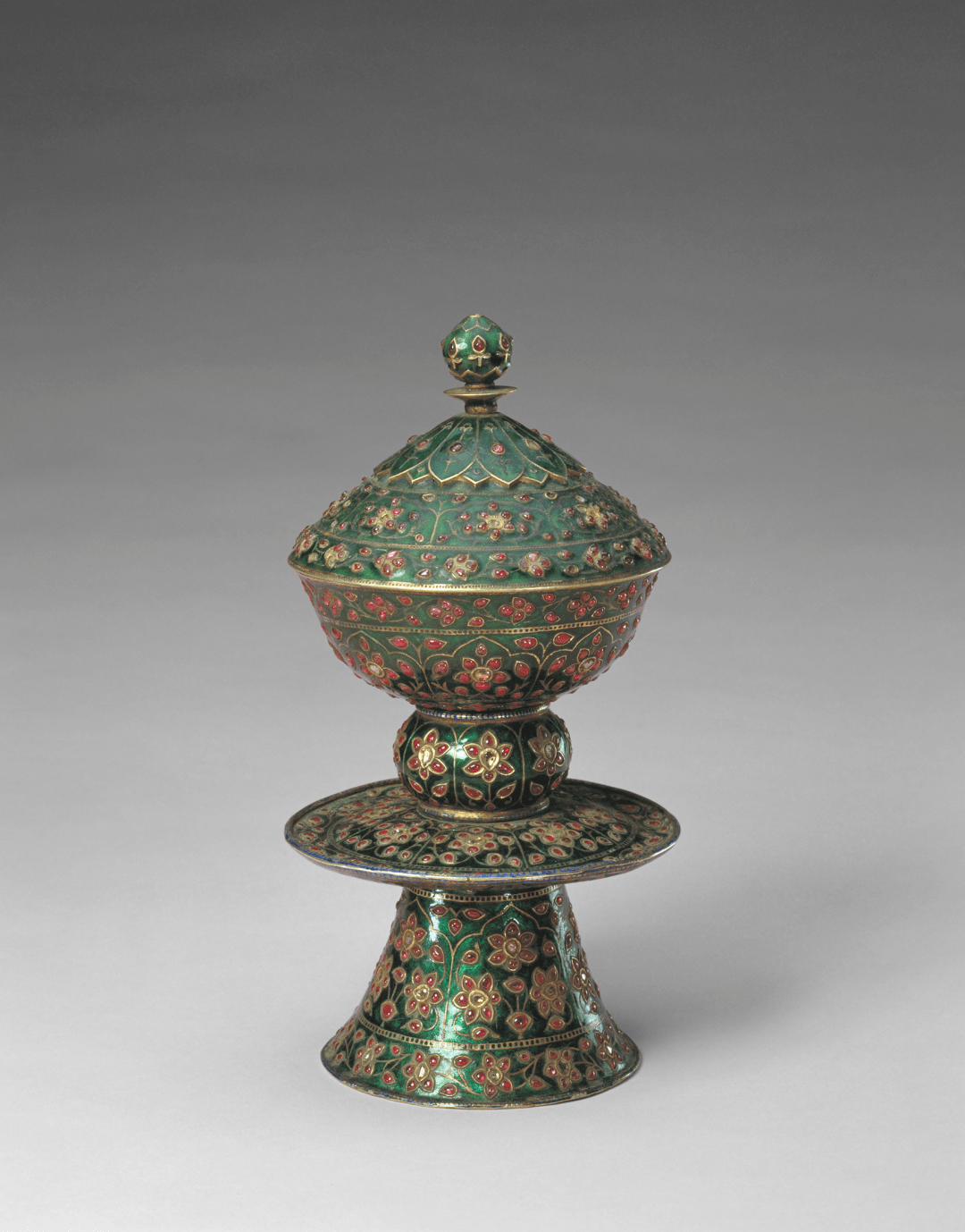 △ 银胎绿珐琅嵌宝石玻璃把碗