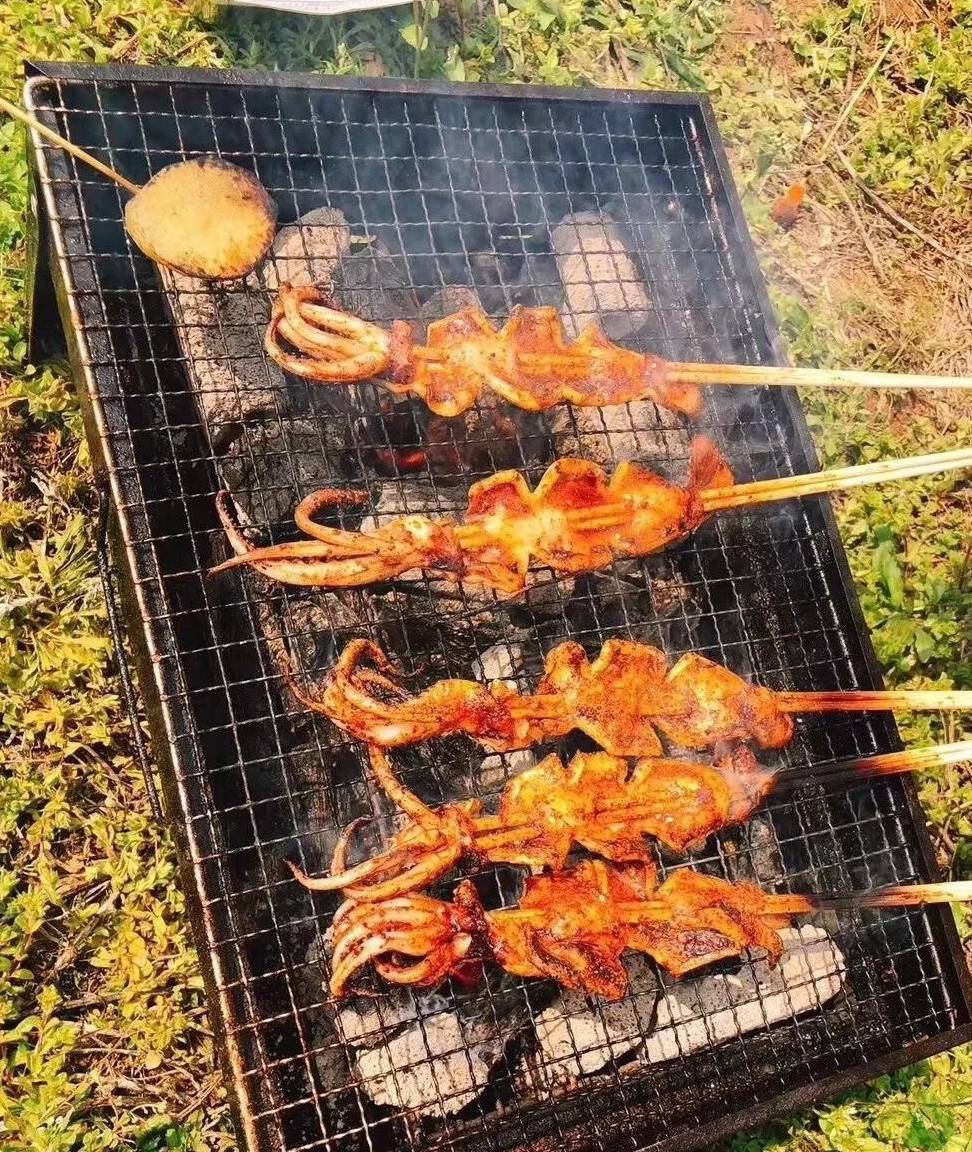 烧烤鱿鱼、锡纸金针菇、辣椒串羊肉
