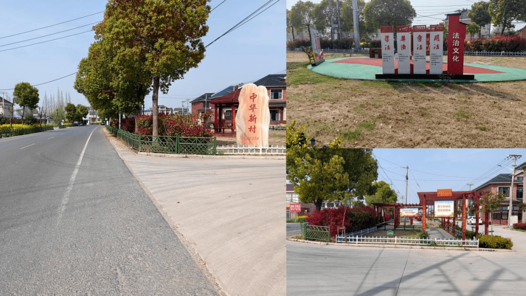 扬中家港路是贯穿中华村南北方向的重要交通通道,极大地方便了村民的来往和交流。在唐家港路中段,中华新村居民点打造一系列文化设施:法治文化长廊提升村民法治意识;农民大舞台以村民参与表演的方式展现发展成果,带动了村民的向心力,增强了中华村的凝聚力。