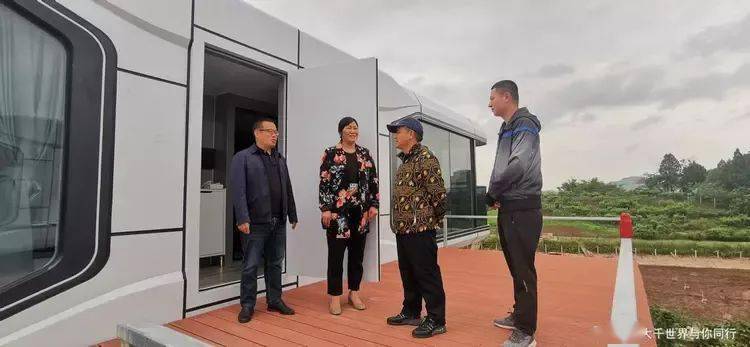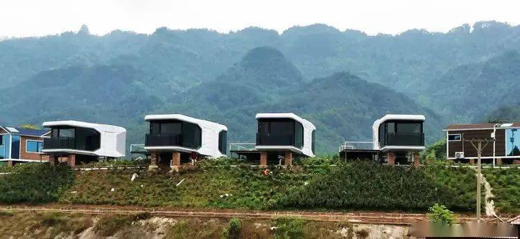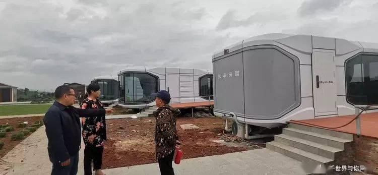 在巴岳山下的一个坡地里,4个智能化太空舱民宿和14个造型各异精品民宿房已经安装完毕,几十位工人有的忙着安装室内的设施,有的铺设草坪,有的栽种景观花木。