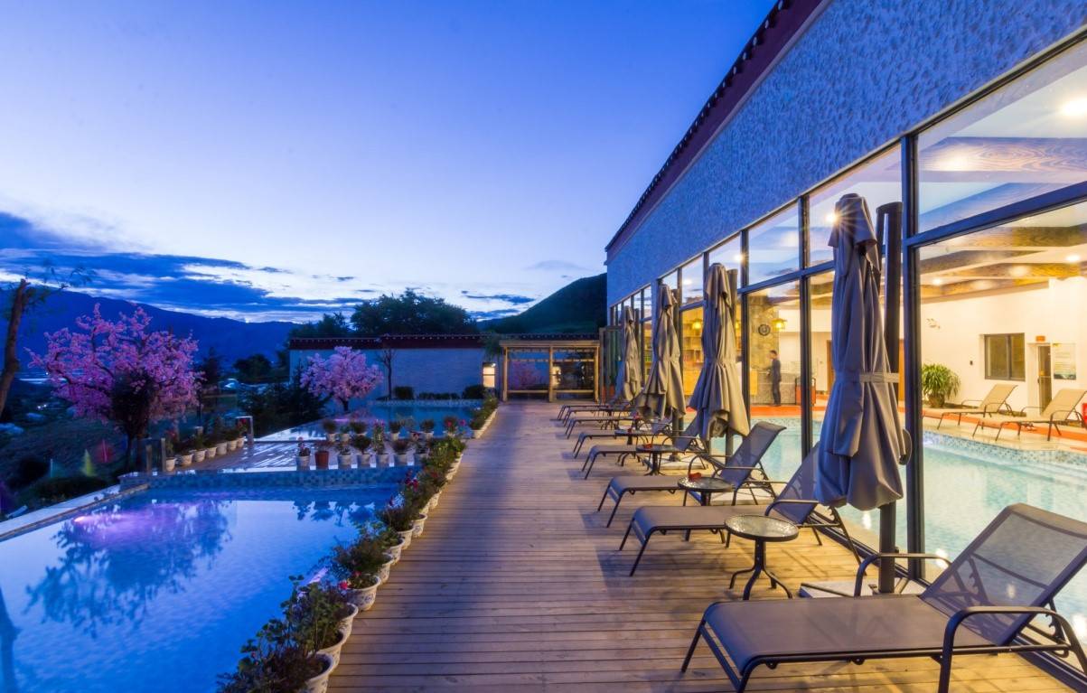 4、达东温泉度假中心:拉萨近郊的“太阳泉谷”,地处达东古村落的东山之上,紧邻达东房车营地和仓央嘉措古庄园,坐拥绮丽的自然风光与深厚的人文底蕴。项目环境清雅,视野广阔,在保留原有古朴乡村风貌的基础上,与自然环境融为一体,雅致的室内泡池和清幽的室外泡池组成,将成为拉萨近郊环境最好、档次最高、体验感最佳的温泉胜地。