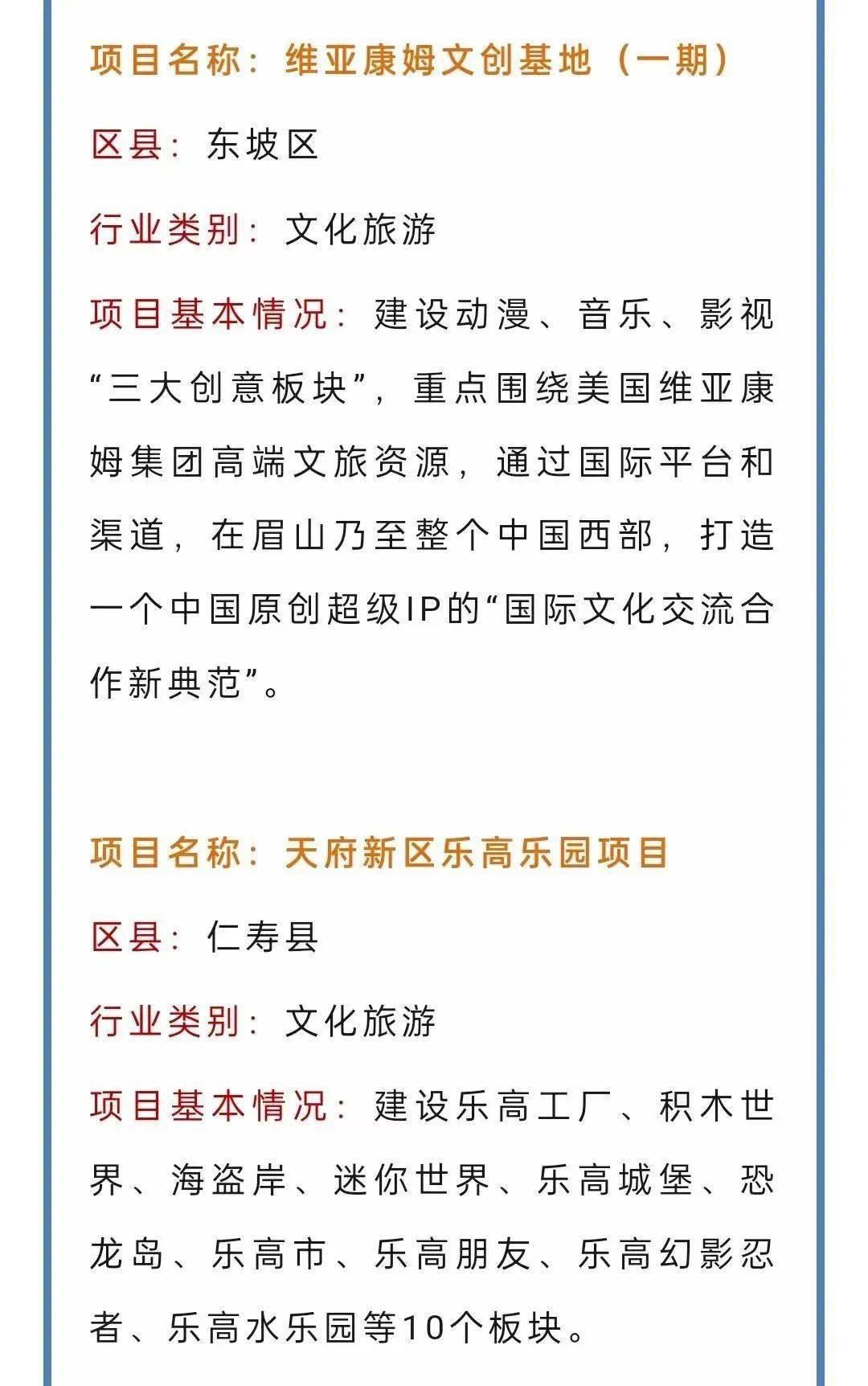 眉山2023年服务业十大续建项目包含维亚康姆文创项目及乐高乐园项目丨图源:眉山发布