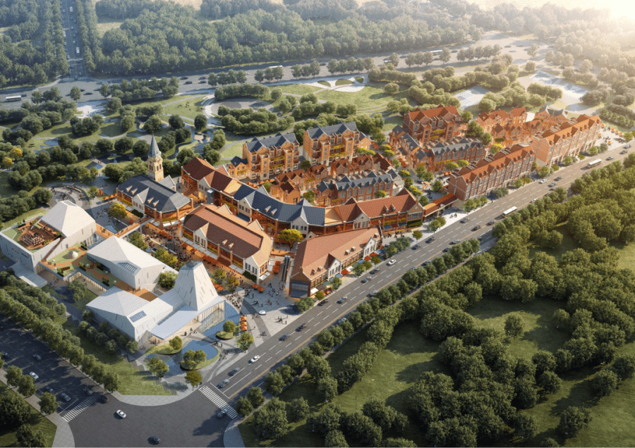 小猪佩奇国际文旅项目局部效果图——青少年中心及英伦商业街区丨图源:卓越集团官网