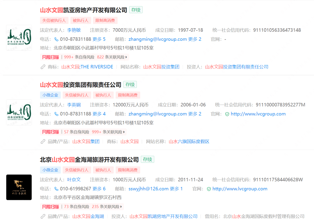山水文园相关企业多已被列为失信被执行人丨图源:企查查