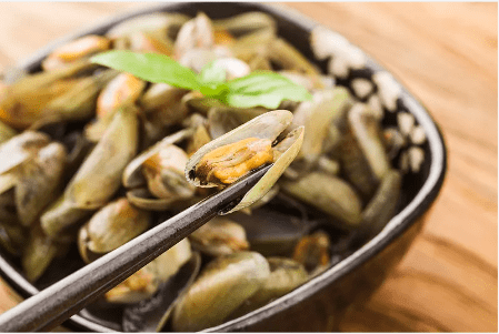 象拔蚌。俗称为“象鼻蚌”,味鲜甜,肉质爽脆,吃法有多种,常见的有片成薄片生食,配上麻油等酱碟;其次可和潮州特产酸咸菜等一起煮成汤,也可煮粥、油泡、生炒等,烹制时切忌过火,否则肉质变韧。