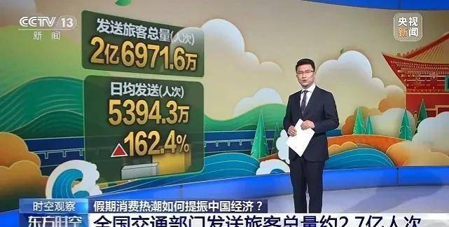 飞机不是吹的,火车不是推的,中国人民的旅游浪潮,没有任何一个国家能够做得到。一则数字,让世界感叹中国人的节日流动性。五天假期,中国交通部门共发送旅游人数达2.7亿人次,北到黑龙江漠河,南到海口、三亚,西至敦煌月牙泉,东至青岛、渤海湾。粗略计算,几乎每个家庭都有一人在路上,海量人员出门旅游,带动了全国零售业、餐饮业服务,比往期额度上升约19%,销售收入同比增长24.4%,服务和商品消费同比增长28.7%和19.5%。游客兜里有钱,旅途慷慨购物,几年疫情闷坏了,是否“报复性”购物?不排除这种心理影响。反正,大大拉动了全国旅游市场消费。