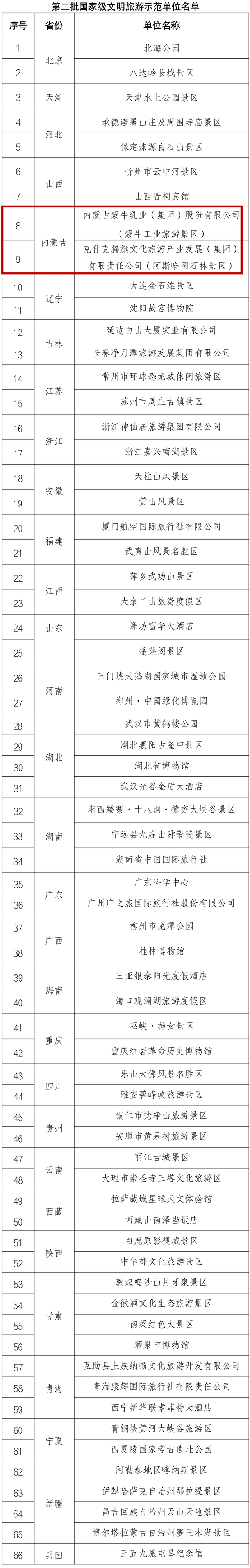 5月9日,文化和旅游部公布第二批国家级文明旅游示范单位名单,内蒙古有2家单位上榜。