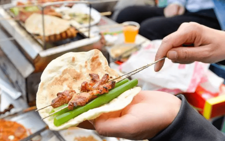 还可以搭配一张薄饼,和烤串一起吃,那滋味别提多美了。
