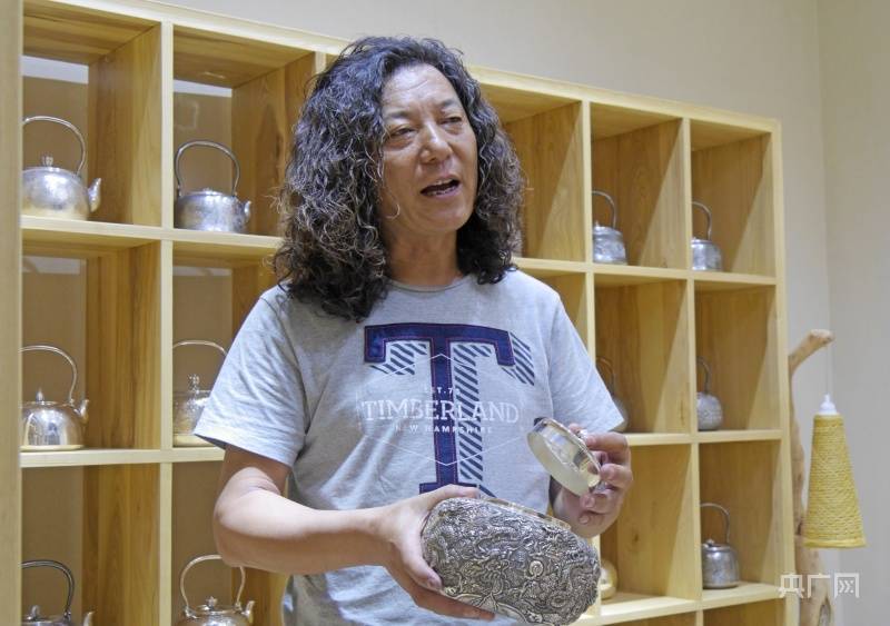国家级非遗项目鹤庆银器锻制技艺代表性传承人、中国工艺美术大师母炳林(央广网发 绞雄才 摄)