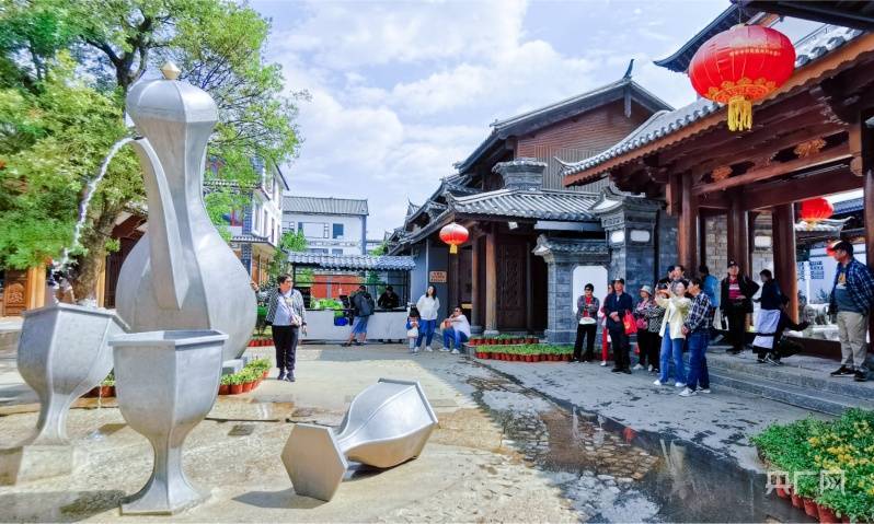 鹤庆新华银器小镇以其美丽的自然风光、悠久独特的银器历史文化吸引了来自全国各地的游客(央广网发 黄云程 摄)