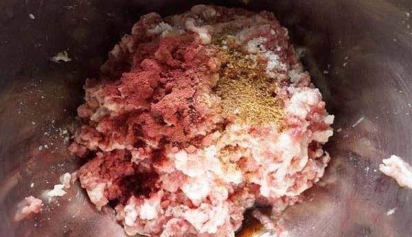 1、用肥瘦比例为1:2的肉,腊肠中一定要有好的肥肉,如果没有肥肉腊肠的味道会大打折扣。腊肠中最重要的就是辣椒面与花椒面,将猪肉切成骰子块儿配料中加入辣椒面、花椒面、白酒、白糖与盐,调制好的肉要腌制2到3个小时,让肉充分入味,腌制时间太短,味道进不到肉中间去。