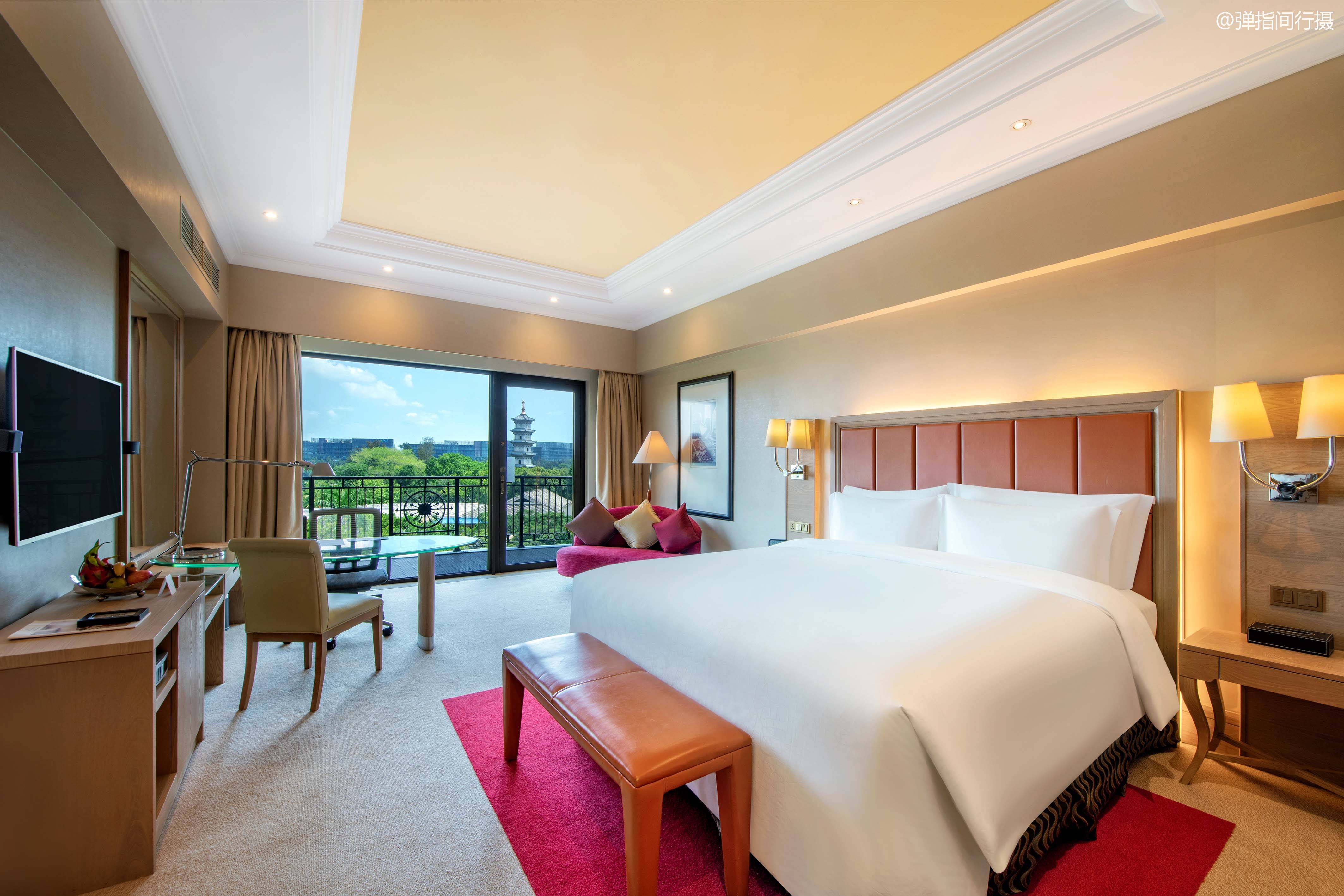 酒店拥有540间豪华客房与套房,分布于主楼和东西两翼。客房面积宽敞,空间分割合理,设计温馨典雅,配色以暖黄色为主,灯饰为船柱造型,灵感源自西班牙航海文化,挂画皆为西班牙艺术家原作,房间从家具、床品到灯饰、地毯,以及各种细节服务,都体现了低调奢华的品质和不凡的品位,为宾客缔造舒适高效的商旅生活空间。