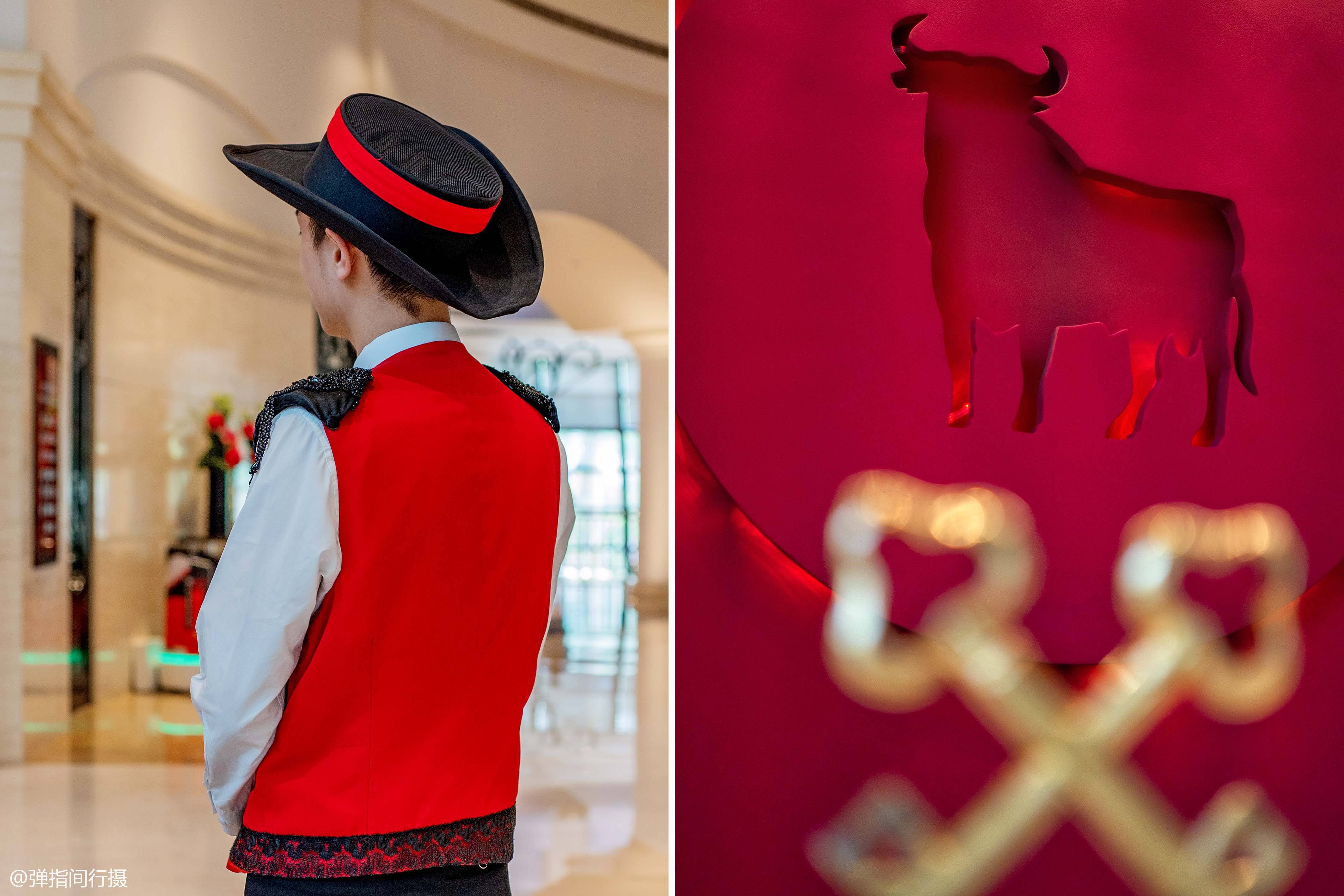 西班牙元素还体现在酒店员工制服上,以当地文化元素为灵感设计的员工制服与酒店整体文化艺术相得益彰,礼宾生着装则来自西班牙斗牛士服饰。