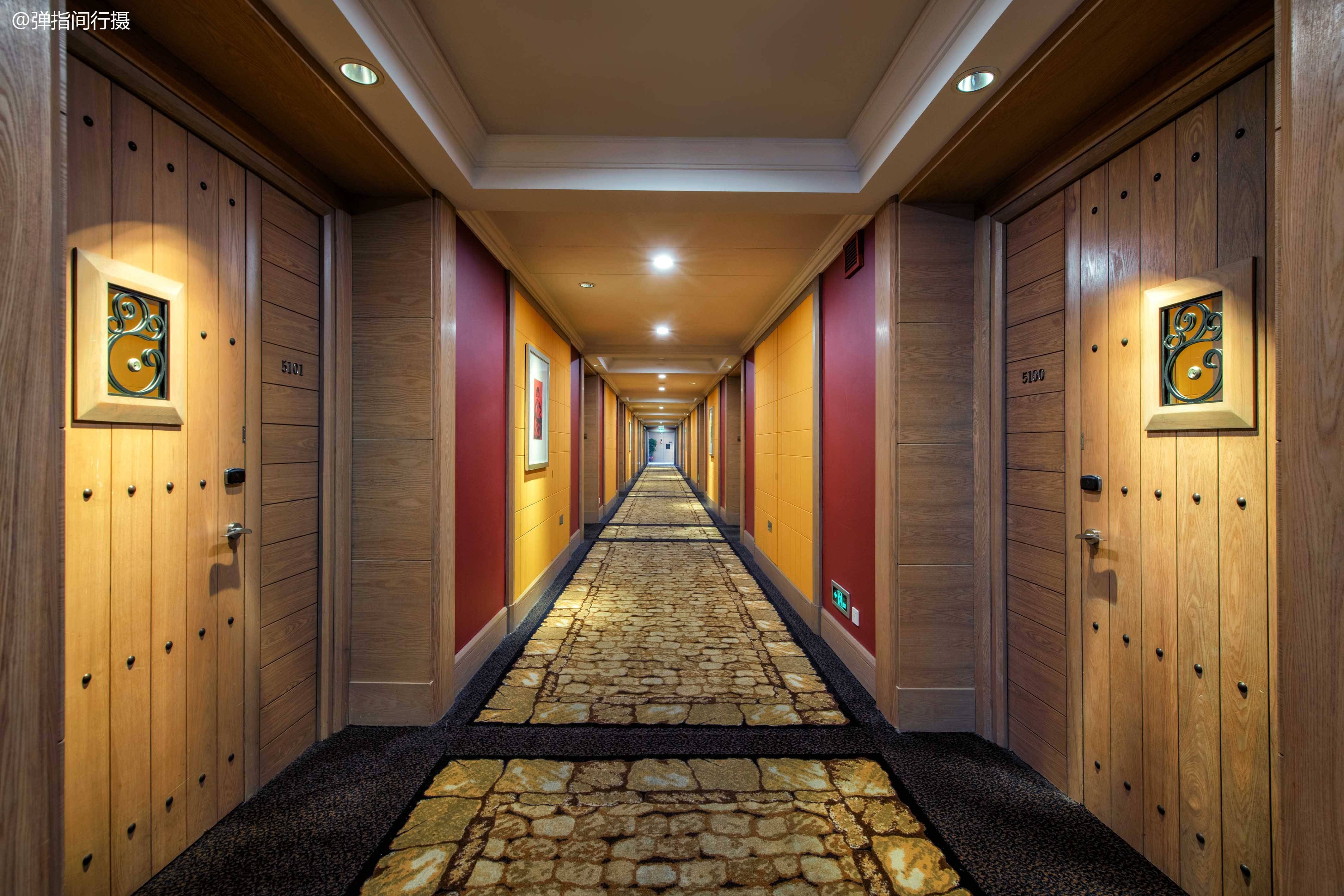 客房楼层通道设计也别出心裁,古堡木门、复古地毯、艺术挂画、瓷牛装置和弗拉门戈折扇等,尽显浓郁的西班牙文化风情。尤其是走廊地毯巧妙采用西班牙奔牛节元素,让人宛如走在古老的西班牙石子街上。